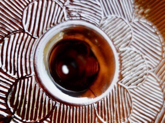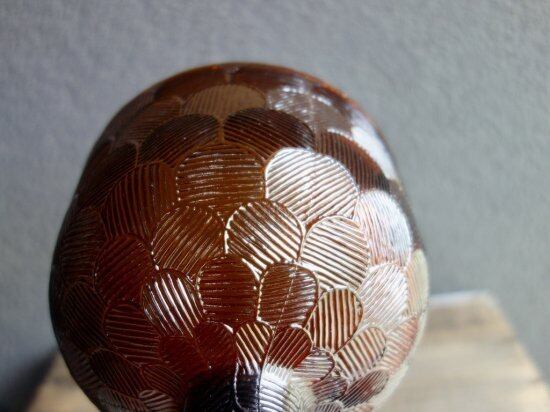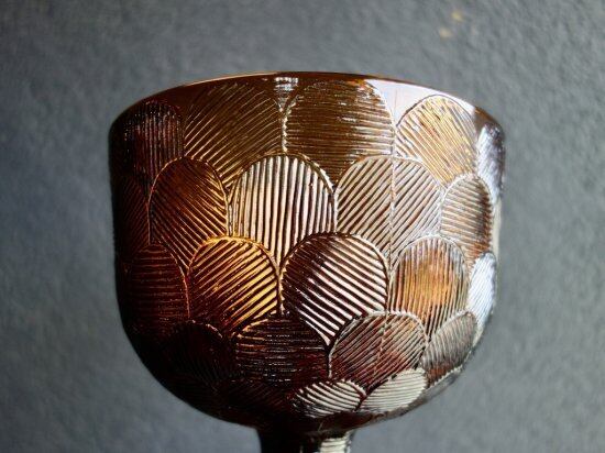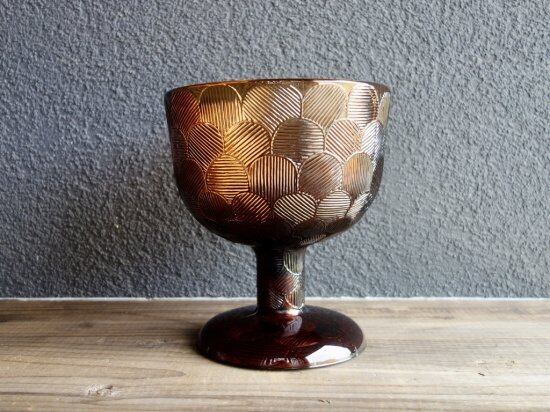 "Miranda" は Heikki Orvola(ヘイッキ・オルヴォラ)によって1970年代に手掛けられたシリーズで、花びらが「ウロコ・おはじき」みたいに描かれた特徴を持つ大変可愛らしいデザインです。土台の裏面にまで可愛らしく花びらが象られ、どこから見ても美しい模様とフォルムは圧巻です。こちらは茶色の脚付の巨大ボウルです。美しくデザインされた土台(座)がしっかりとボウル部分を支えているようなデザインで、ぽってりとした可愛らしい表情を楽しませてくれる逸品です。