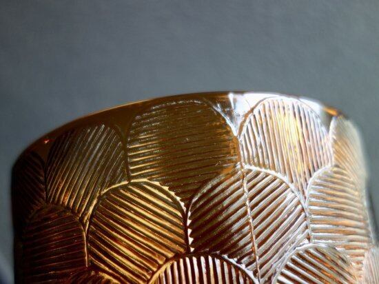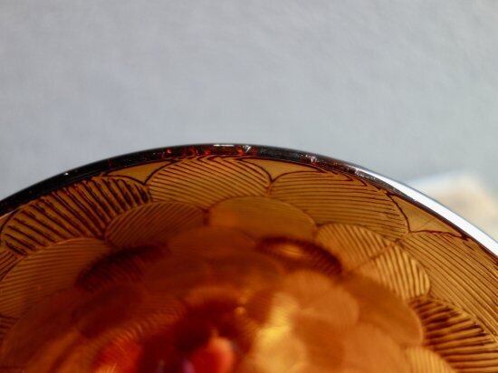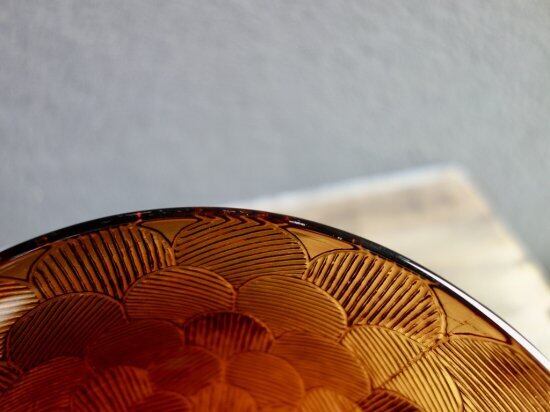 長年の時は経っておりますが、こすれの様な跡や薄汚れなどの使用感はあまり感じられず、目立つ擦れ、キズ、汚れなど見当たらず、欠けや割れなど見られないことから、時を刻んで来たガラスの器として概ね良好な状態と言えます。ガラスの繋ぎ目の様な跡などは一点一点手作業で作られた味、証と捉えて頂ければ幸いです。※ガラス製品特有のゆらぎ、シワやスジ、模様の個体差、加工時の小さな気泡やキズなど出ている可能性はございます。