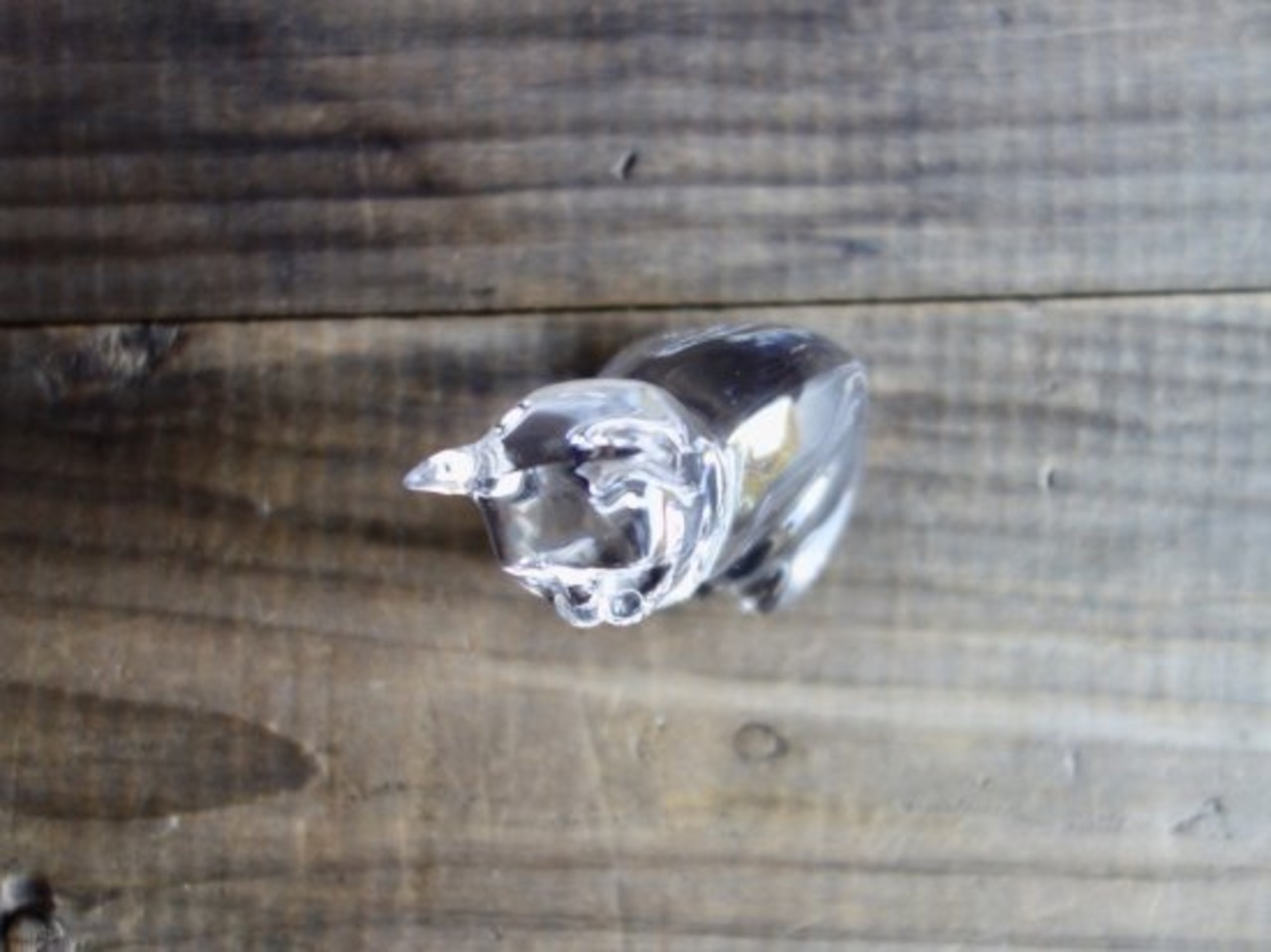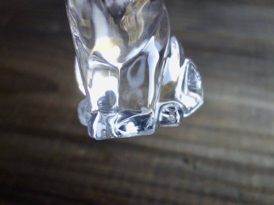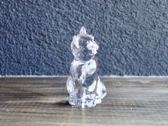 右胸辺りの擦れキズ、前足辺りと尻尾の付け根辺りに表層削れの様な跡は見られますが、その他目立つ擦れ、キズなど見当たらず、欠けや割れなど見られないことから、今の物ではないガラスのオブジェとして比較的綺麗な状態と言えます。※ガラス製品特有のゆらぎ、シワやスジ、加工時の小さな気泡やキズ、象った表情などの個体差は出ている可能性はございます。