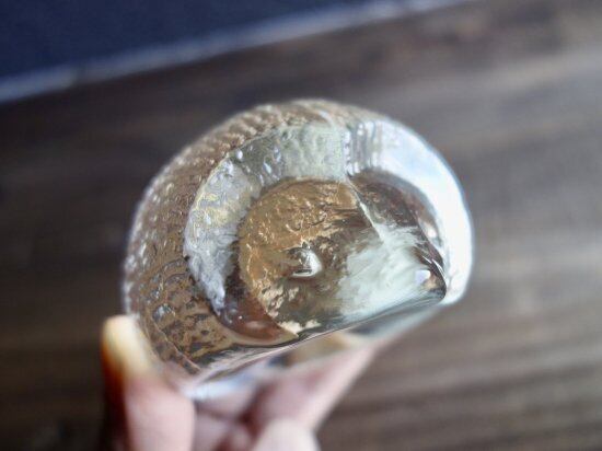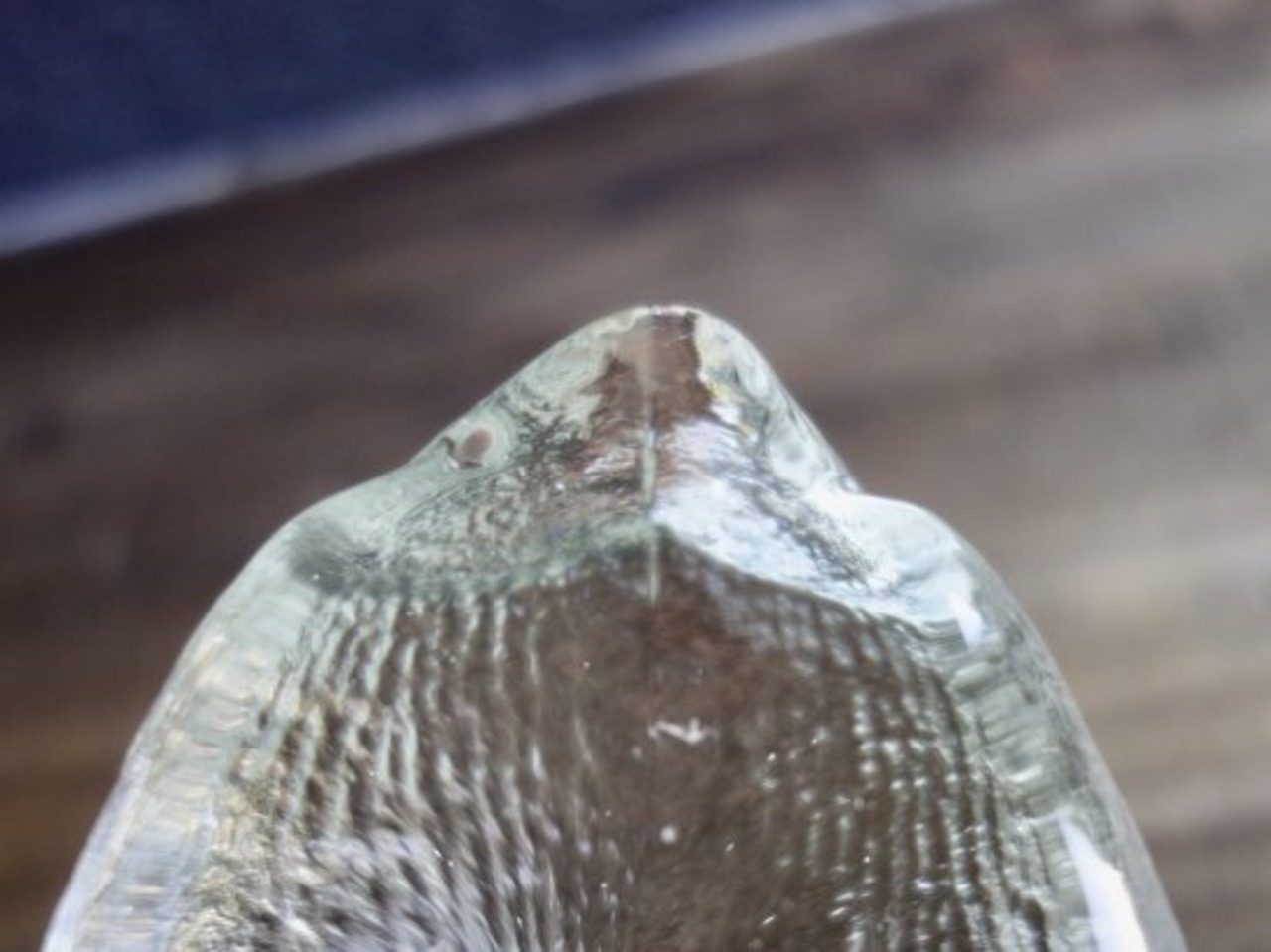 裏面に小さな擦れキズ1つと小さな気泡など少し見られる程度で、欠けや割れなど見られないことから、時を刻んで来たガラス製品として概ね良好な状態と言えます。※ガラス製品特有のゆらぎ、シワやスジ、加工時の小さな気泡やキズ、ガラス肌などの個体差は出ている可能性はございます。