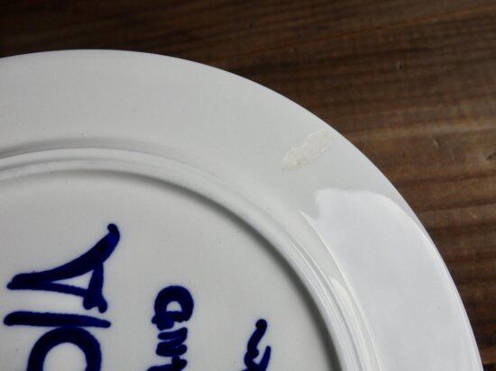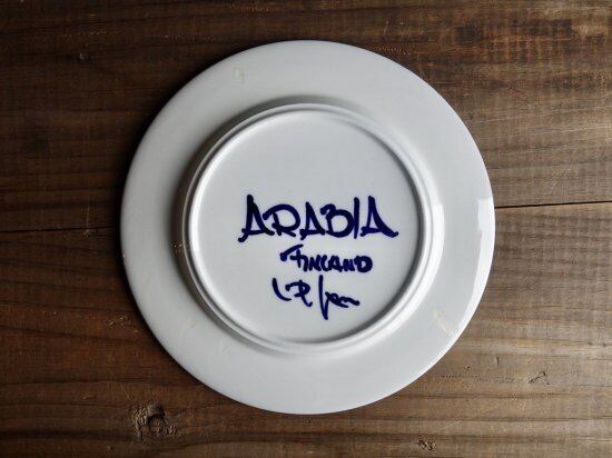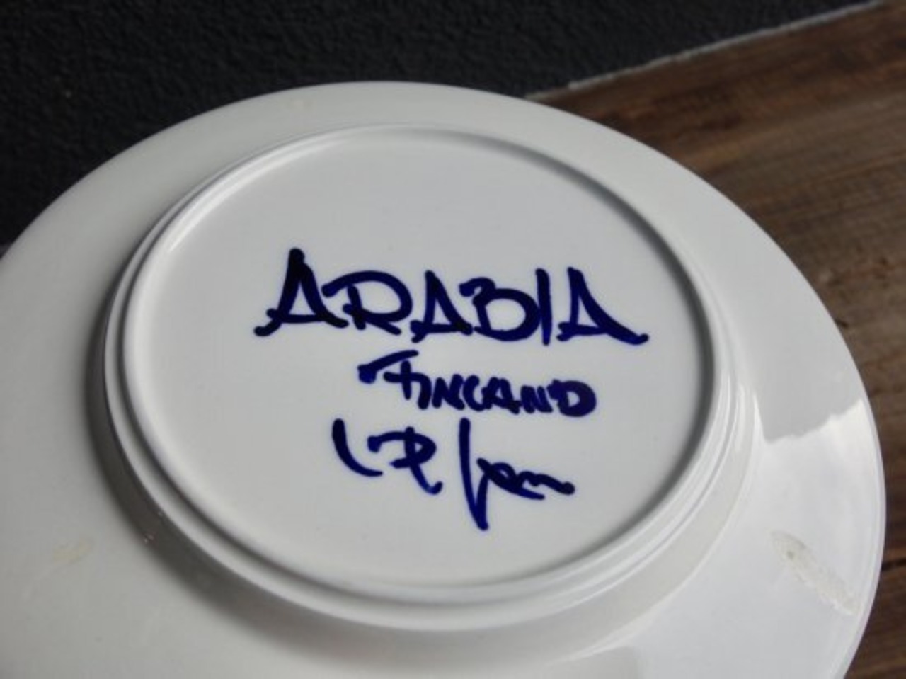 製作跡と言える釉薬ムラや微な藍色の色移りなどは見られる箇所はあるものの、擦れやくすみなど殆ど見当たらず概ね良好な状態と言えます。ハンドペイントによるARABIA、FINLAND、Ulla Procope、絵付師のサインが記されています。※焼成時の支柱跡(画像9)がいくつか見られる状態です。