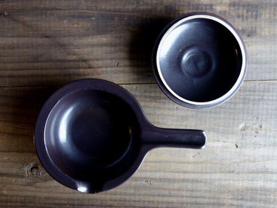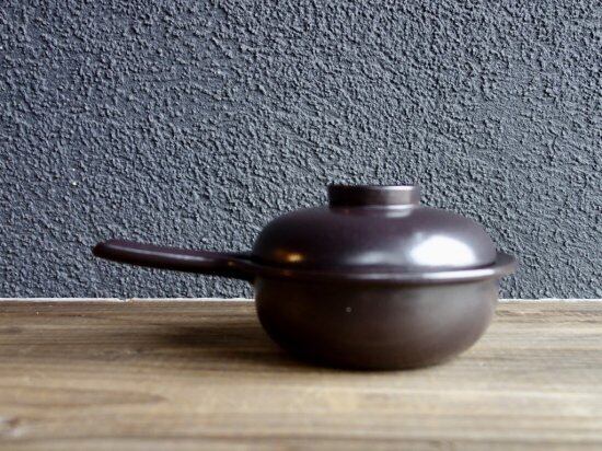 小ぶりではありますが、直火にもかけられるので、きっとこの子にしかできない役割があるはずです。おつまみやソースなどを調理してそのままお出しする器は蓋付なので冷めにくくもあり、個人的にはアヒージョなんか作ってみたいと思わせる片手鍋を丸っこいフォルムで迎え入れてみませんか。