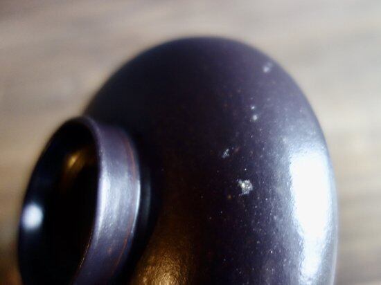 表面に小さな釉薬ムラの様な跡(画像11 / 画像ほど目立つ感じではありません。)は少し見られるものの、こすれやくすみなど(画像13)裏面に感じる箇所がある程度で概ね良好な状態と言えます。蓋上部にこじんまりとしたつまみが付いております。