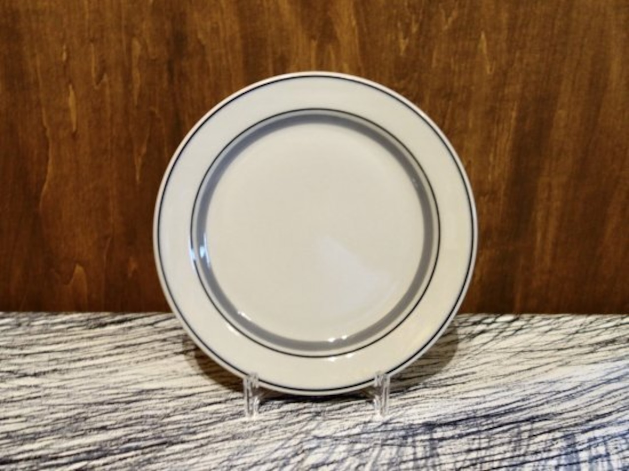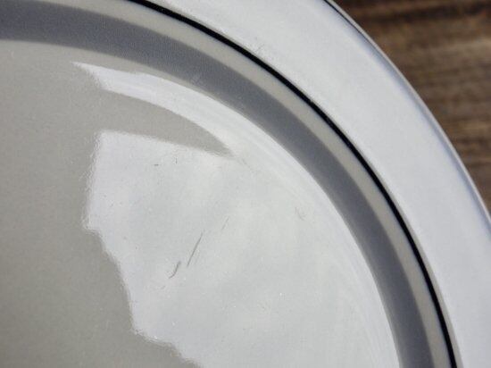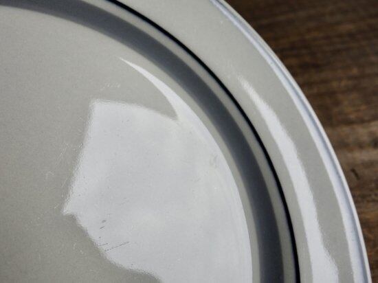 灰色と黒のラインにメリハリをつけ描かれています。カトラリー跡(細かな擦れ・細キズ・色褪せ)などの使用感は多少見られはするものの、比較的綺麗な状態と言えます。