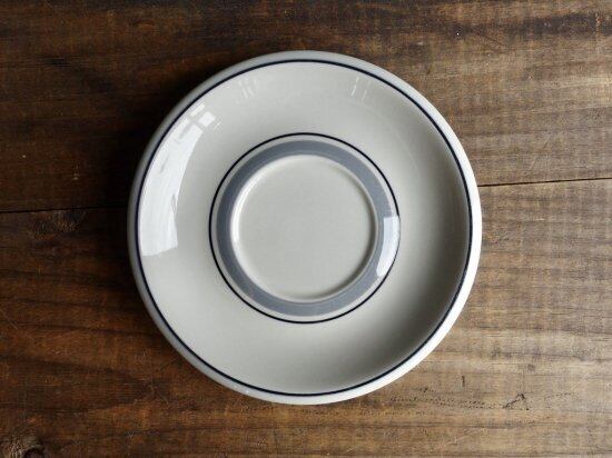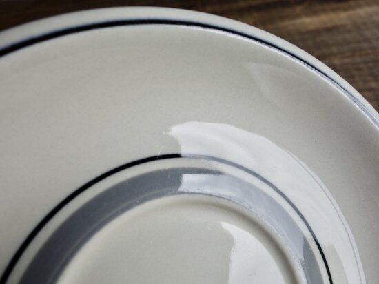 カップと同じ色味のライン使いはカップを乗せた時のつながり(すなわちトータルバランス)を大切にしているかの様です。カトラリー跡の様な細かな擦れや細キズなど(画像9,10)の使用感は少し見られる箇所はありますが、目立つ擦れ、キズ、汚れ、色褪せなど見当たらず概ね綺麗な状態と言えます。※灰色のライン上に白く見えるスジが見られますが、これは絵付けムラの様な個体差になります。