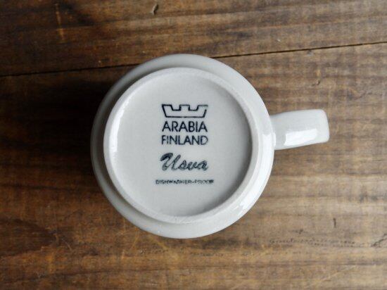 座を兼ねている割に細かな擦れやくすみなど殆ど見当たらず概ね良好な状態と言えます。ARABIA "Usva" バックスタンプが記され、食洗機可とされています。