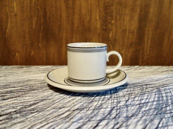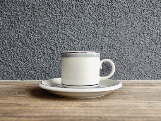 灰色のラインが安らぎを加味しているコーヒーカップ&ソーサーをティータイムのお供に迎え入れてみませんか。モノトーン調の色味と言えますので、他の食器とも仲良く活躍してくれそうです。