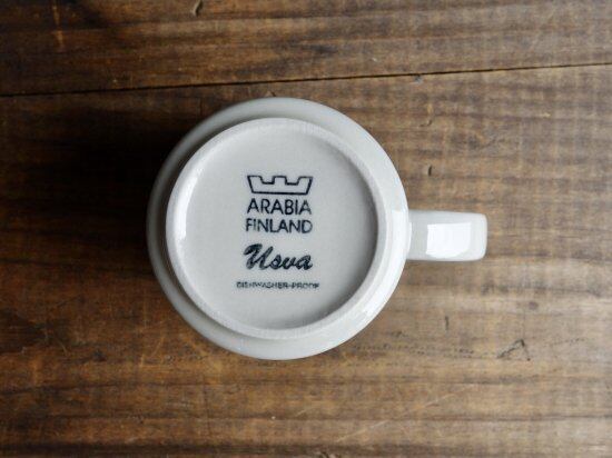 座を兼ねている割に細かな擦れやくすみなど殆ど見当たらず概ね良好な状態と言えます。ARABIA "Usva" バックスタンプが記され、食洗機可とされています。