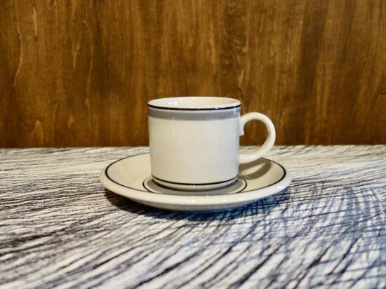 灰色のラインが安らぎを加味しているコーヒーカップ&ソーサーをティータイムのお供に迎え入れてみませんか。モノトーン調の色味と言えますので、他の食器とも仲良く活躍してくれそうです。
