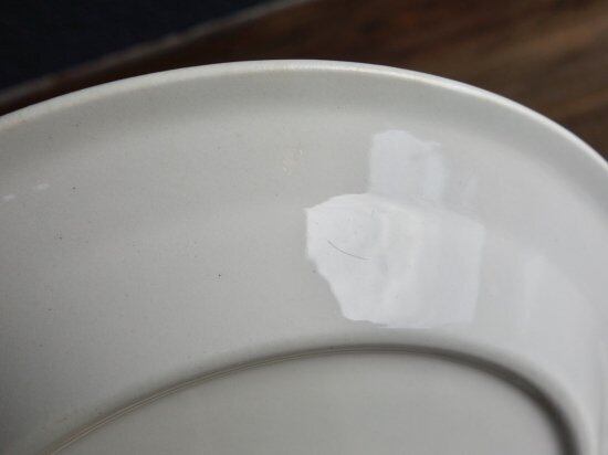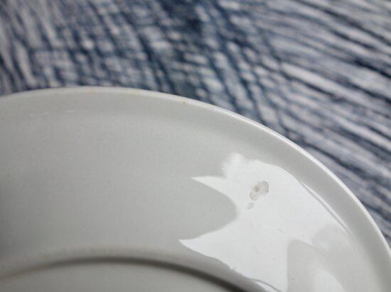 釉薬ムラ風化のような表面のザラつく感じ、縁裏の薄茶色の小さな汚れ(画像10)は少しありますが概ね良好な状態と言えます。