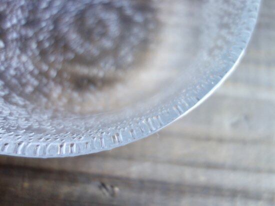 微細な擦れなど薄っすら僅かに感じる程度で、目立つ擦れ、キズ、汚れなど見当たらず、欠けや割れなど見られないことから、時を刻んで来たガラスの器として概ね良好な状態と言えます。※ガラス製品特有のゆらぎ、シワやスジ、加工時の小さな気泡やキズ、粒模様の個体差など出ている可能性はございます。