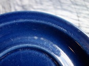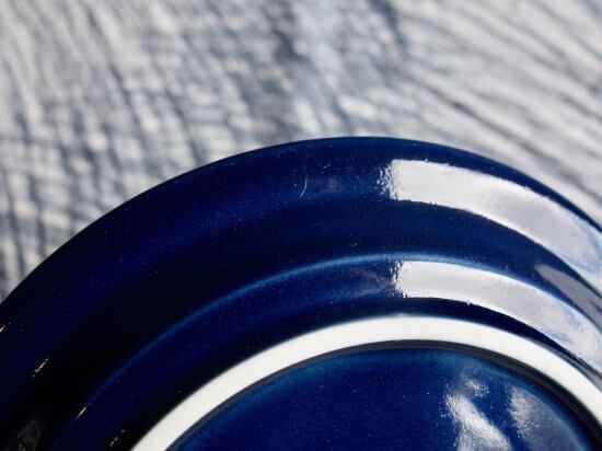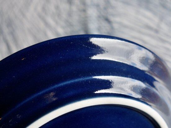 内面は地の色(白)となっています。これは、おそらくコバルトブルーの中に白い部分が見えコーディネートなどの際に美を追求したものと思われます。微黒点など多少見られるものの、底面のカトラリー跡など薄っすら僅かに感じる程度で概ね良好な状態と言えます。
