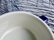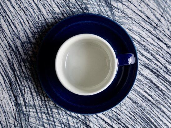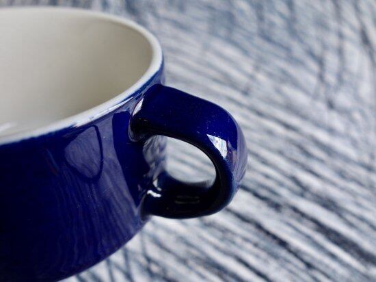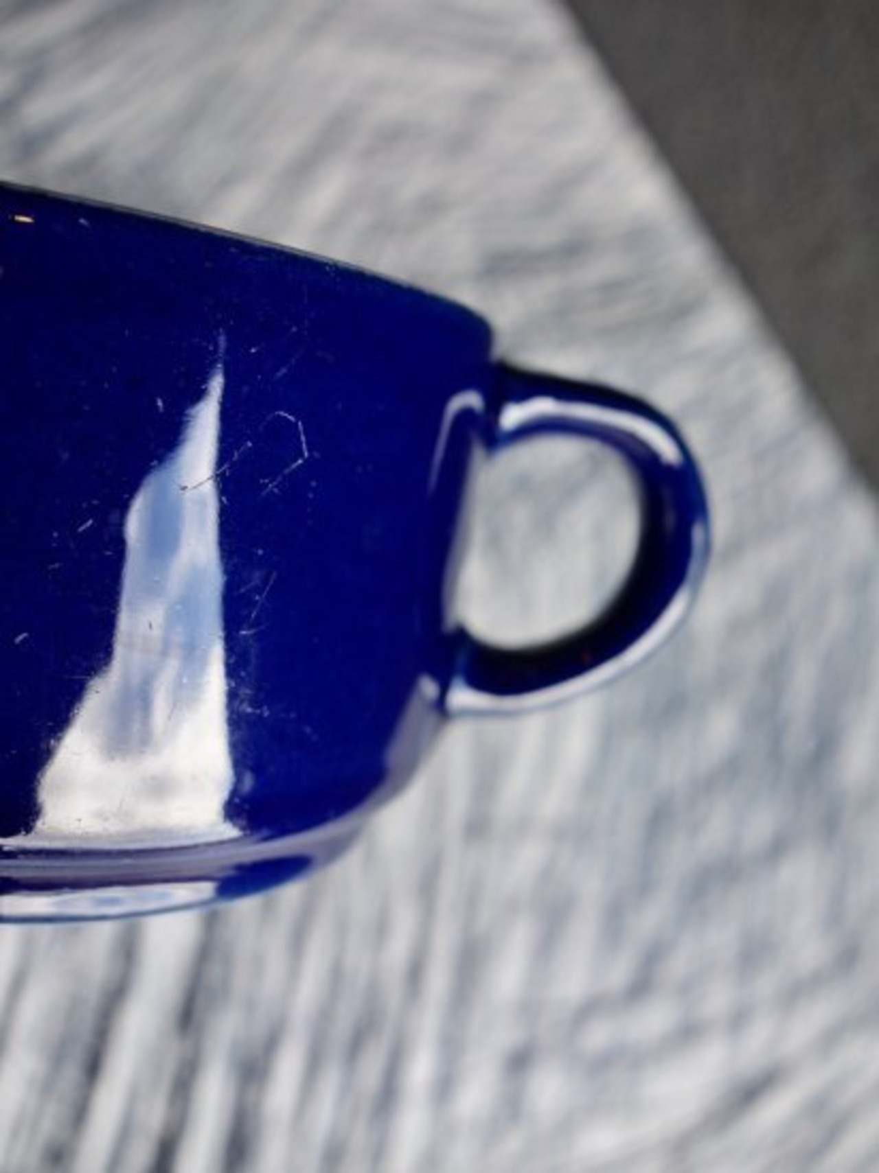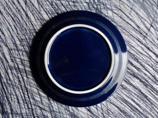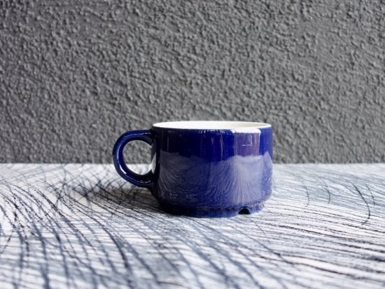 “Kievari” は Kesti や Kerho の 頭文字が "K" のシリーズで、区別し難い程見た目と仕様共に似ており、ホテルやレストランなどで使用する業務用の器として Goran Back(ゴラン・バック)によって手掛けられました。実用性に富んだシンプルで丈夫な作りには業務用という過酷な条件下でも耐えうる機能美的要素を踏まえた設計思考の様なものが読み取れる器と言え、側面の深海の様なコバルトブルーの色味と飲み物が映え、内側白との切返しにも惹きつけられます。