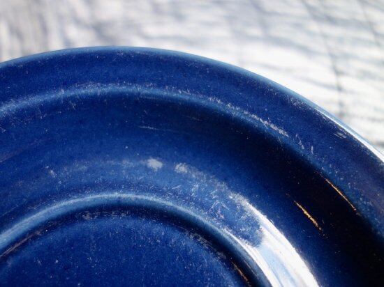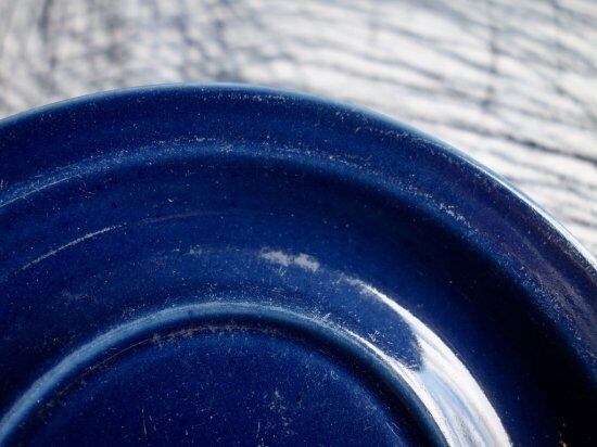風合いの変化、カップとの擦れやカトラリー跡と言える細かな擦れやキズ、色褪せなどの使用感はありますが、気に障る擦れ、キズ、汚れ、色褪せなど見当たらず、欠けや割れなど見られないことから比較的綺麗な状態と言えます。※ゆらぎ、色や釉薬のムラ、微妙なカップとの色味や表情の差異、焼成時の跡などの個体差は多少出ている状態です。