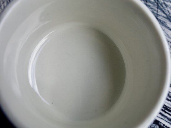 カップ同士スタッキングする事を前提にデザインされており、さすが業務用。スタッキング接触部の擦れやくすみはあまり見られないのですが、高台内に少し細キズなど(画像11)の使用感が見られ概ね綺麗な状態と言えます。