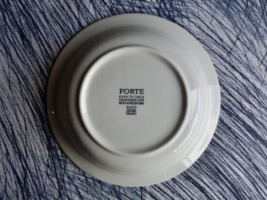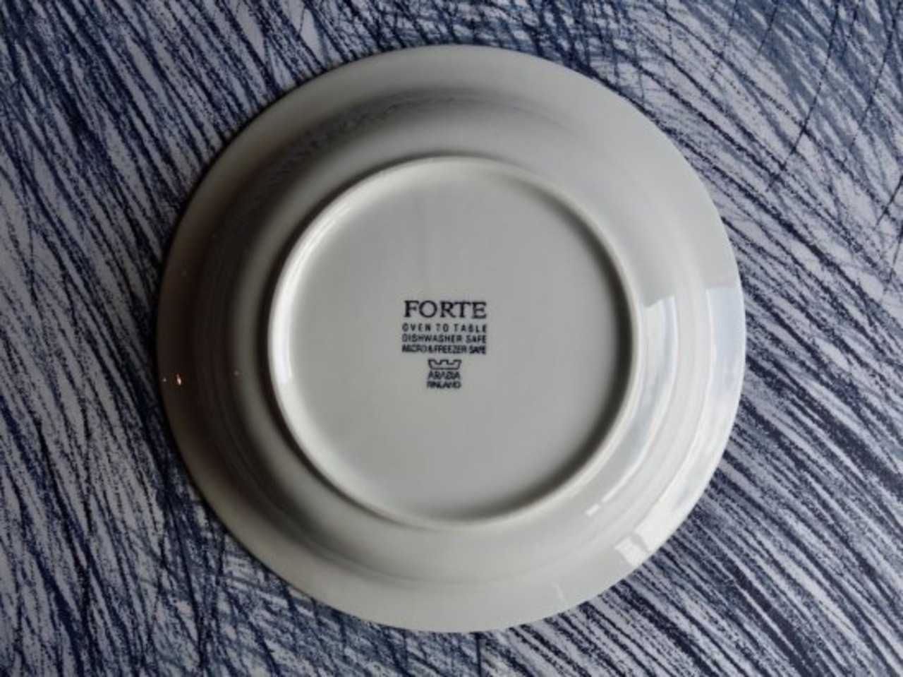 細かな擦れやくすみなど(画像7)座に薄っすら感じる程度で概ね良好な状態と言えます。ARABIA、FORTEのバックスタンプ、オーブンレンジ、食洗機、電子レンジ、フリーザー可とされています。