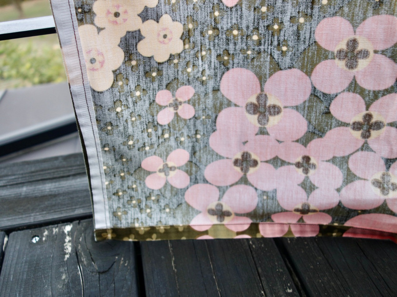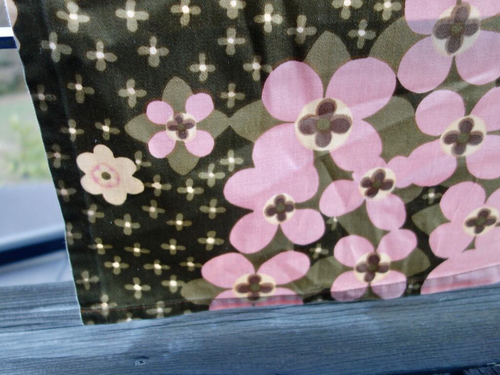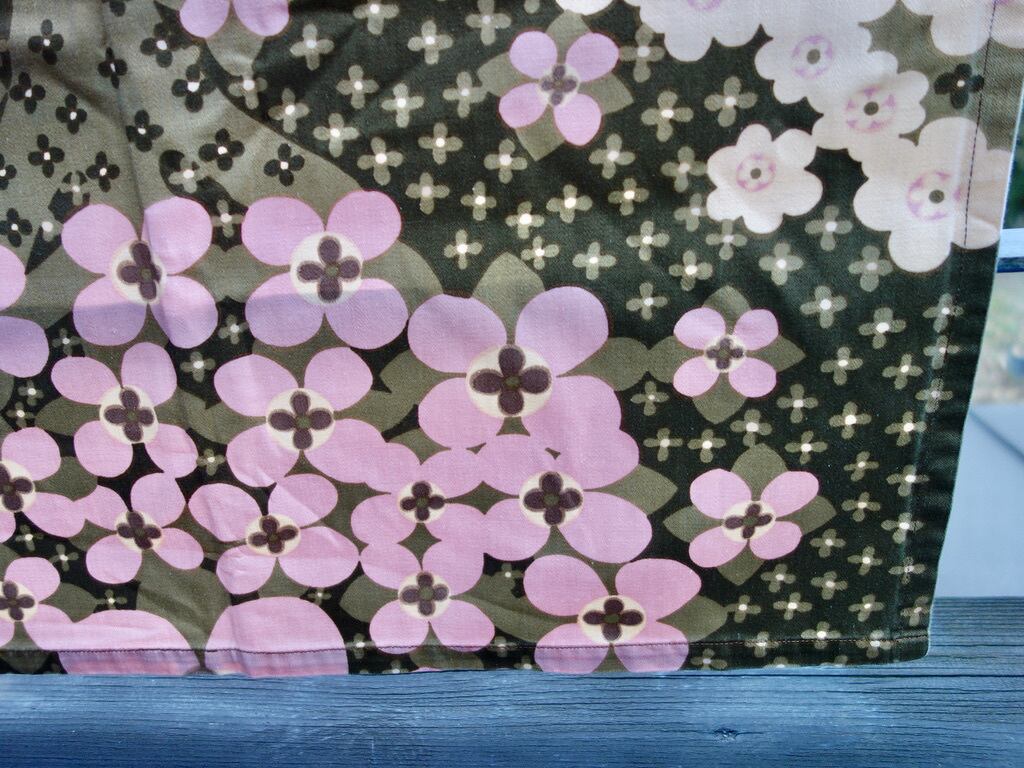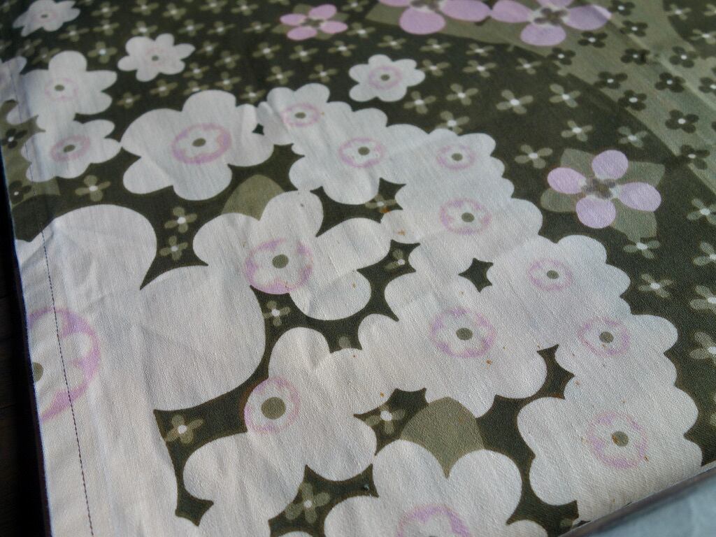 経年による風合いの変化は感じられ、色褪せなど薄っすら出ているのかもしれませんが、一部に小さな汚れが見られる程度で、目立つ汚れなど見当たらず、生地に裂けや穴など見られないことから、この年代の生地として概ね綺麗な状態と言えます。※織り跡やムラ、ネップ、プリントや色味の個体差、色飛び、輸送・保管時の折りシワや跡など出ている可能性はございます。