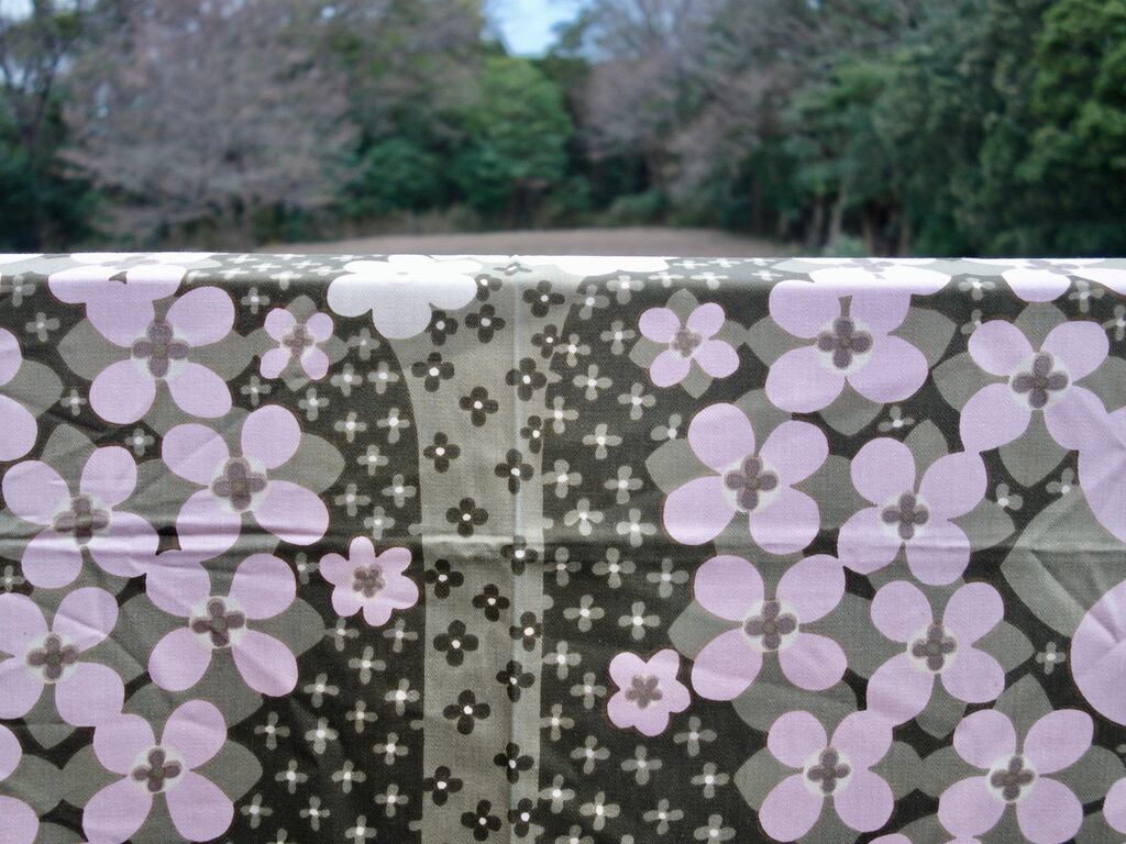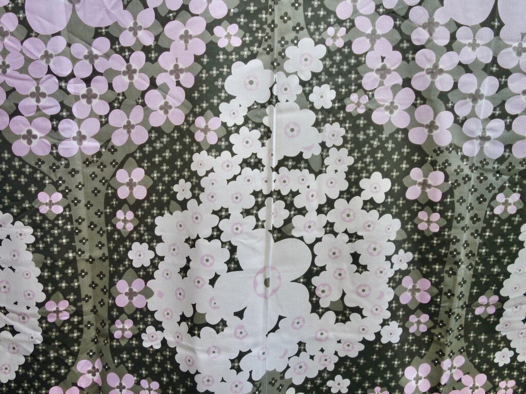 1970年代頃に Marjatta Metsovaara(マリエッタ・メッツァヴァーラ)によってパターンデザインされた "Katinka" は木々に満開の花が咲いたシンメトリーデザインと言え、美しく・可愛らしく・レトロ・和の印象を放つデザインに仕上げてあります。今は無きTAMPELLA(タンペッラ)社のvintage TEXTILEとなりますので、今となっては大変希少な生地と言えるでしょう。