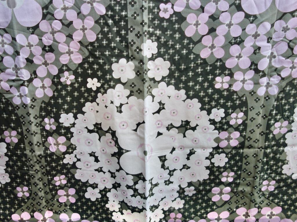 和も感じさてくれる感性の豊かさ、時の流れによるレトロさとシンメトリーの美しさが加味され何とも言えない色味使いに脱帽です。そのまま壁に掛けたり、目隠しや仕切り、カーテン、ディスプレイクロス、テーブルクロスなどで活躍してくれそうです。marimekkoやVUOKKOなどとはまた異なる魅力を放つフィンランドデザインを感じて頂ければ嬉しいです。コンパクトに折り畳めばなんとかレターパックプラスでも送れると思われますが、誤った判断でしたらご容赦下さい。