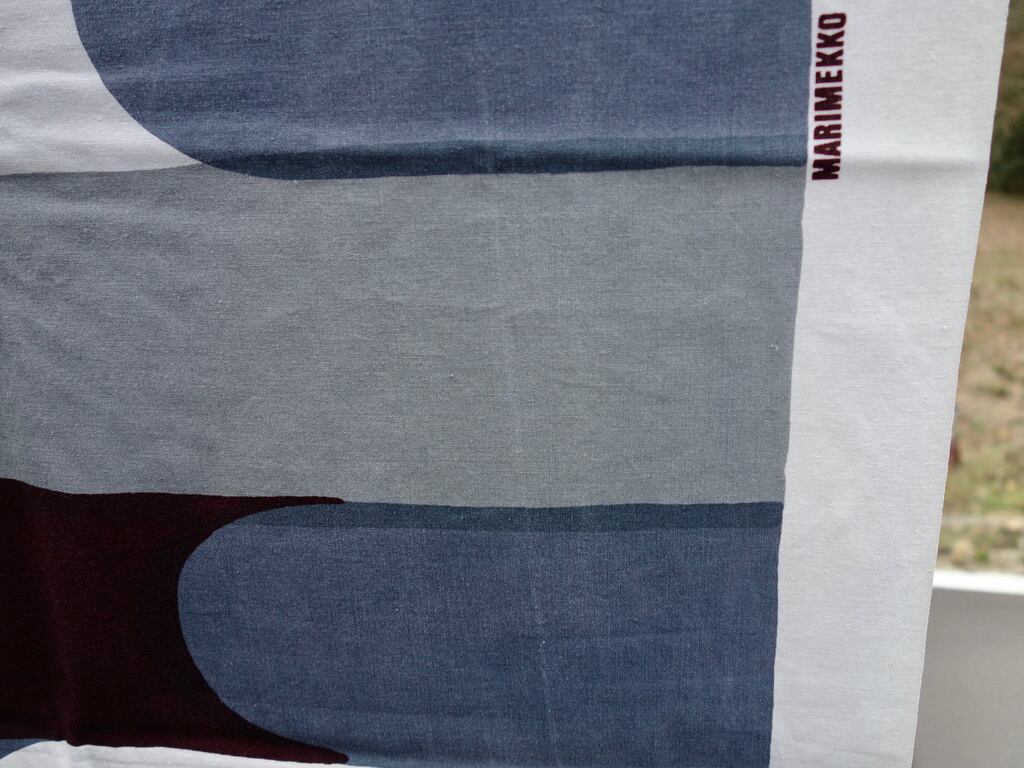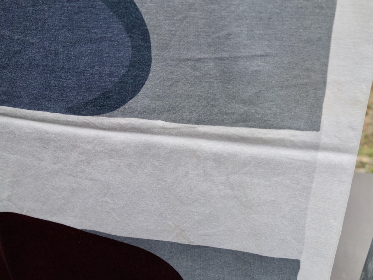左右端:耳の状態未加工のまま。※片側の耳にMARIMEKKOなどのロゴプリントが旧フォントで残されています。