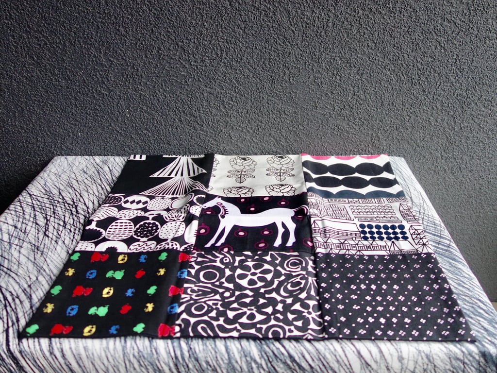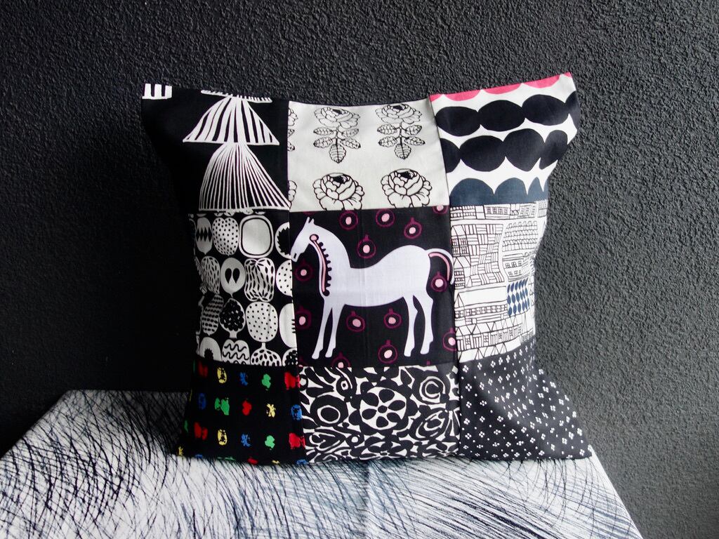 marimekko(マリメッコ)"パッチワーク" ハンドメイドのクッションカバー(黒系1)