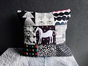 marimekko "パッチワーク" ハンドメイドのクッションカバー(黒系1)