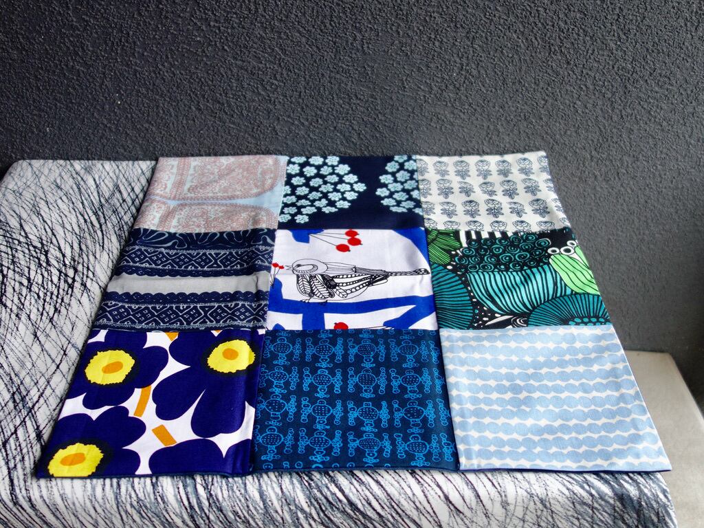 marimekko "パッチワーク" ハンドメイドのクッションカバー(青系1)