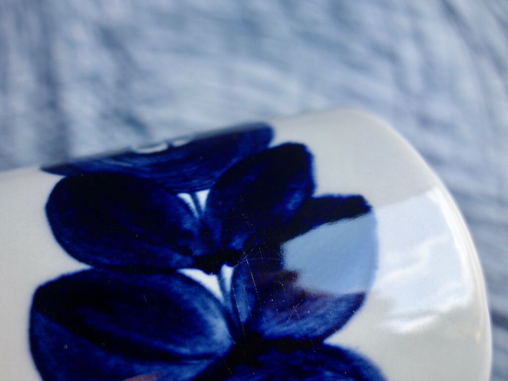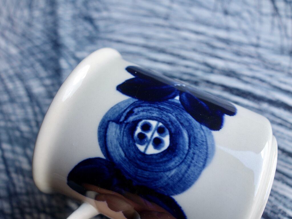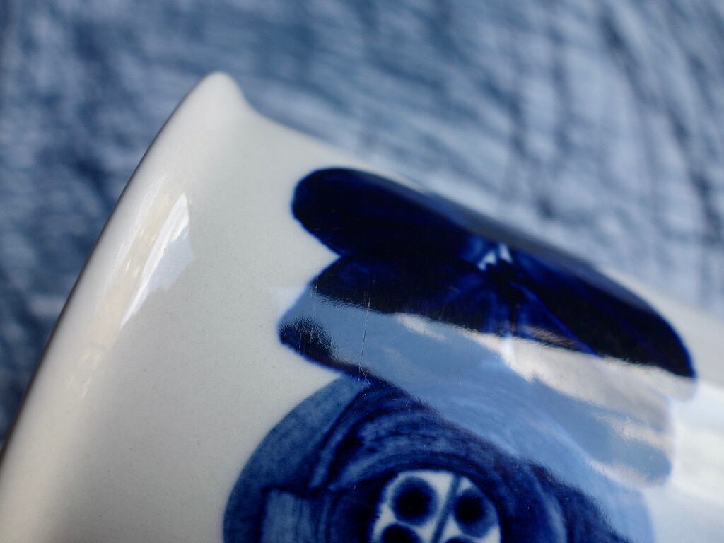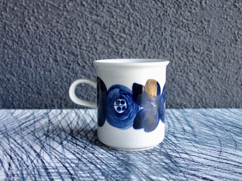 "Anemone" は1960年代の後半頃の作品になります。Ulla Procope (ウラ・プロコッペ)のデザインによってハンドペイントされた大胆深味のある紺色(藍色)の花柄と帯状のラインが特徴的な大変存在感のある美しい名作の一つです。