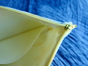 相性の良い淡いレモンイエロー(ビタミン色)の無地生地が合わせられており、内ポケットが一つ施されています。