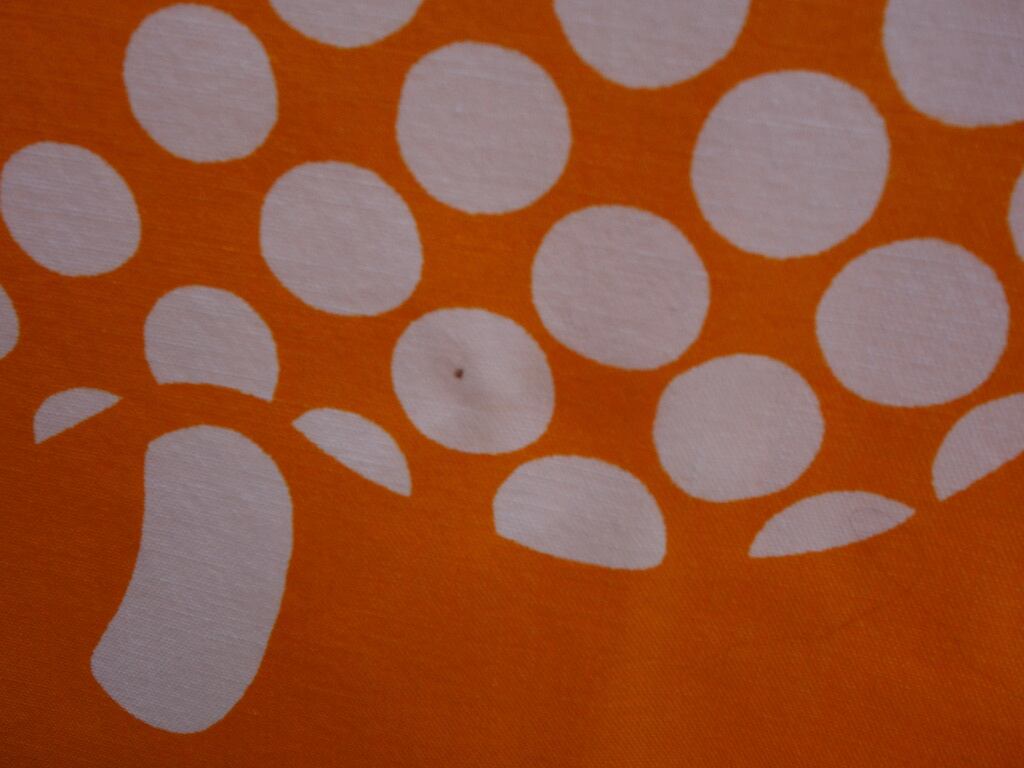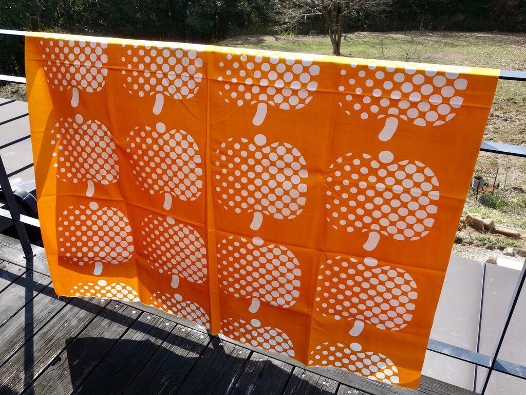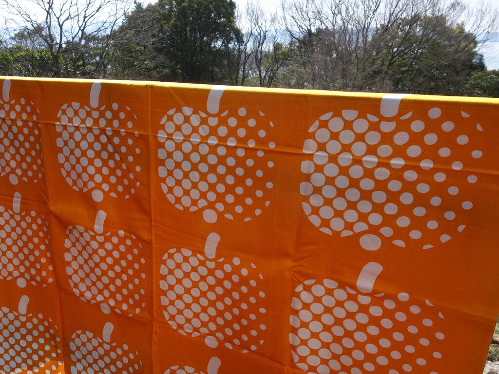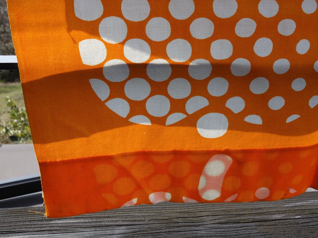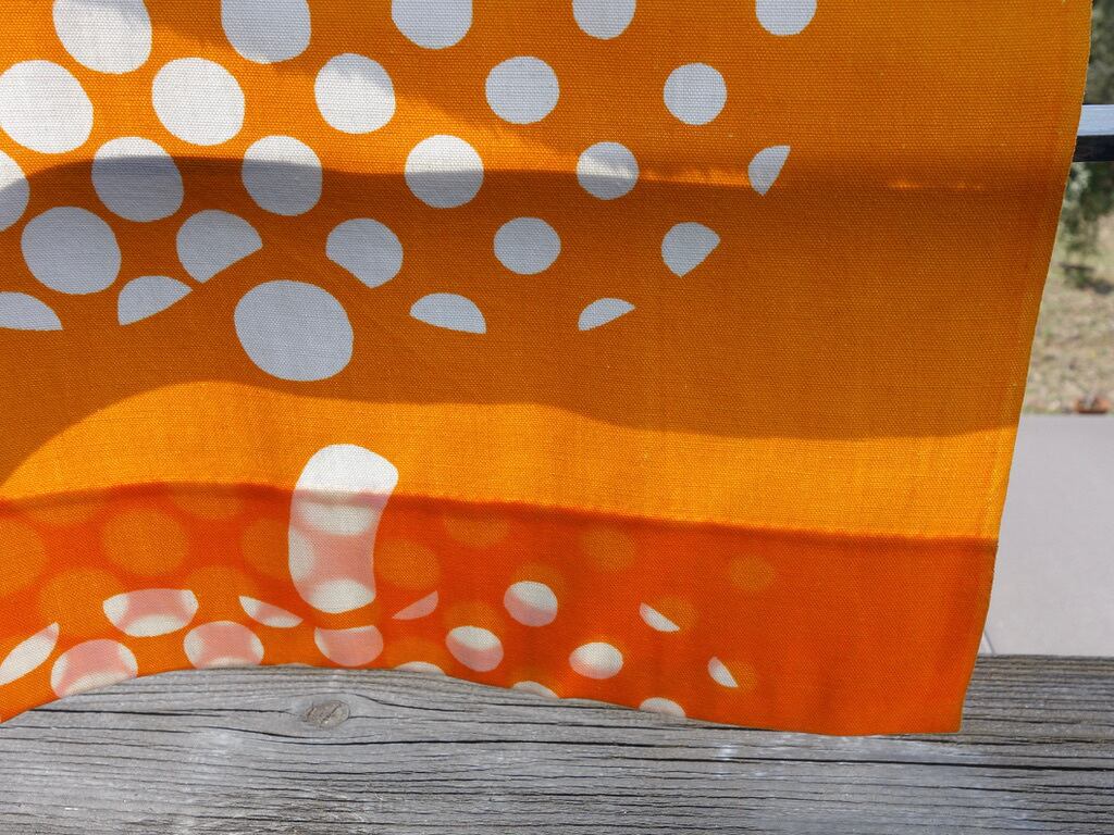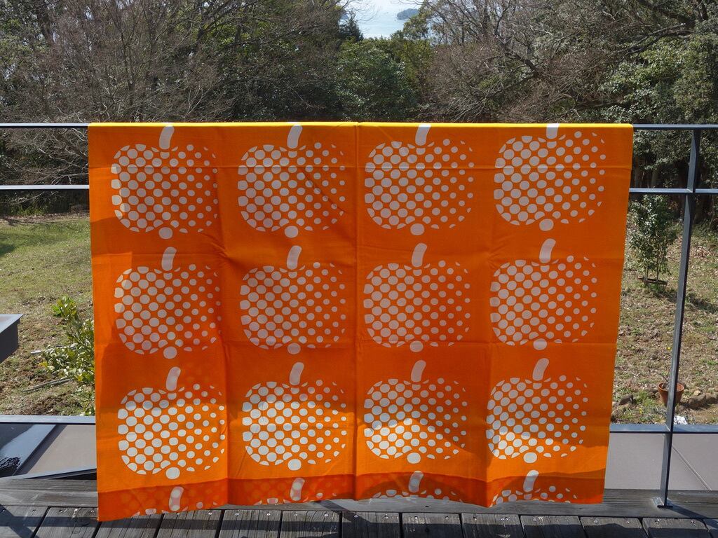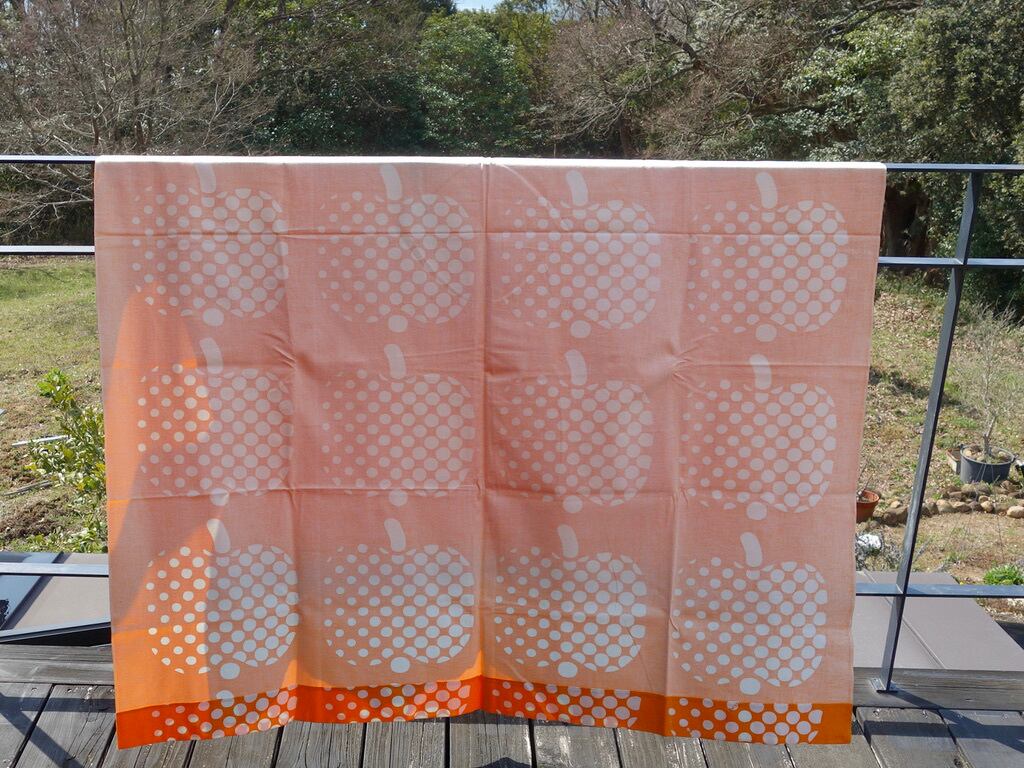 Finlayson 大小のドットでリンゴを描いたパターンデザインのファブリック(廃番)になります。こちらはオレンジ × 白の色味になります。