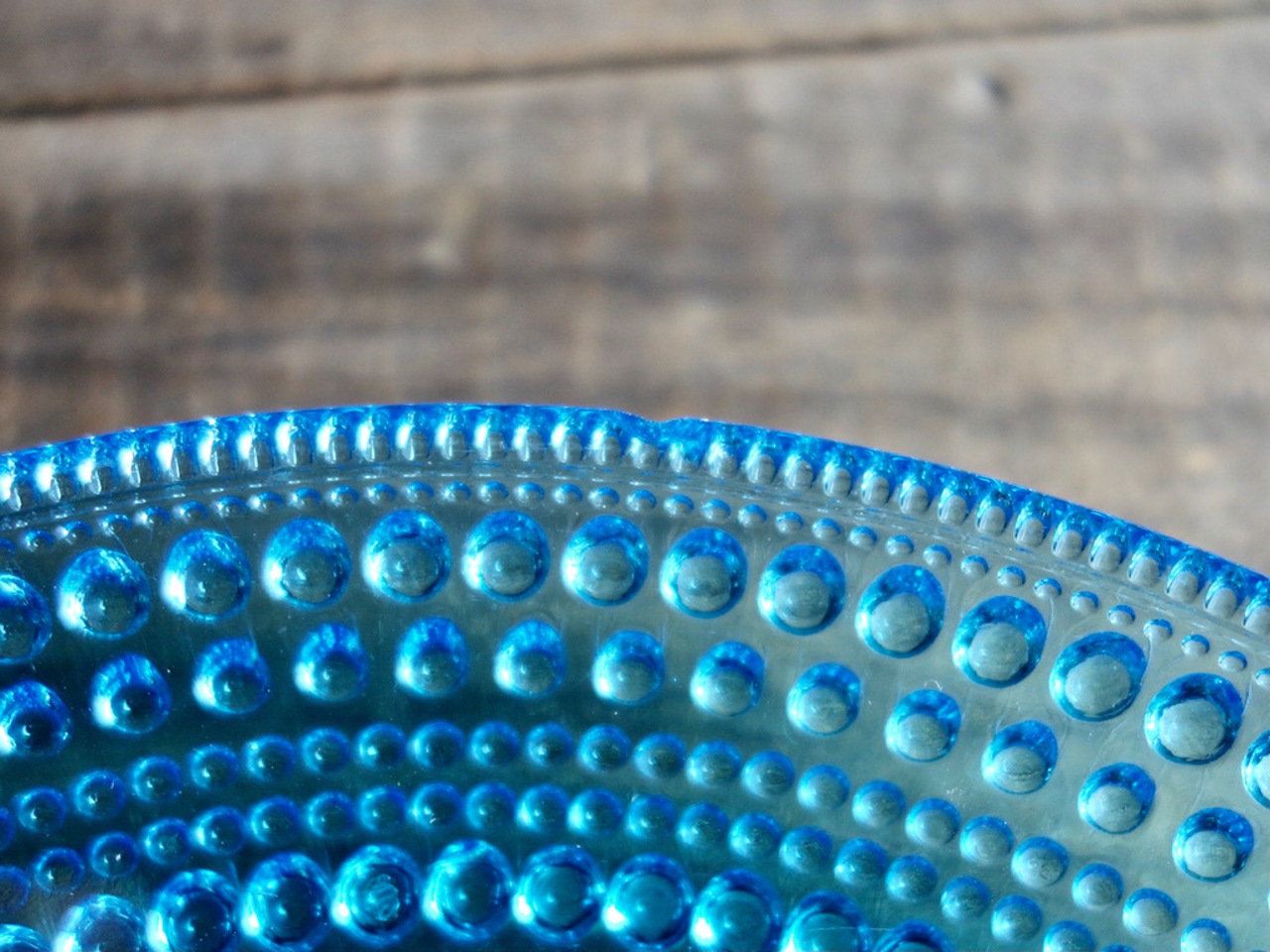 少しの擦れ、カトラリー跡と言える細キズや薄汚れなどの使用感は多少見られる箇所はあるのですが、目立つ擦れ、キズ、汚れなど見当たらず、欠けや割れなど見られないことから、時を刻んで来たガラスの器として概ね綺麗な状態と言えます。※ガラス製品特有のゆらぎ、シワやスジ、加工時の小さな気泡やキズ、繋ぎ目の様な跡、粒一つ一つの大きさや間隔などの個体差は出ている可能性はございます。
