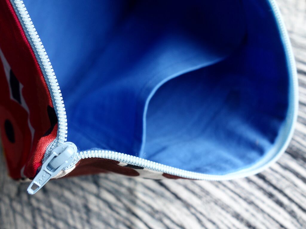 青色の無地生地が合わせられており、内ポケットが一つ付いています。
