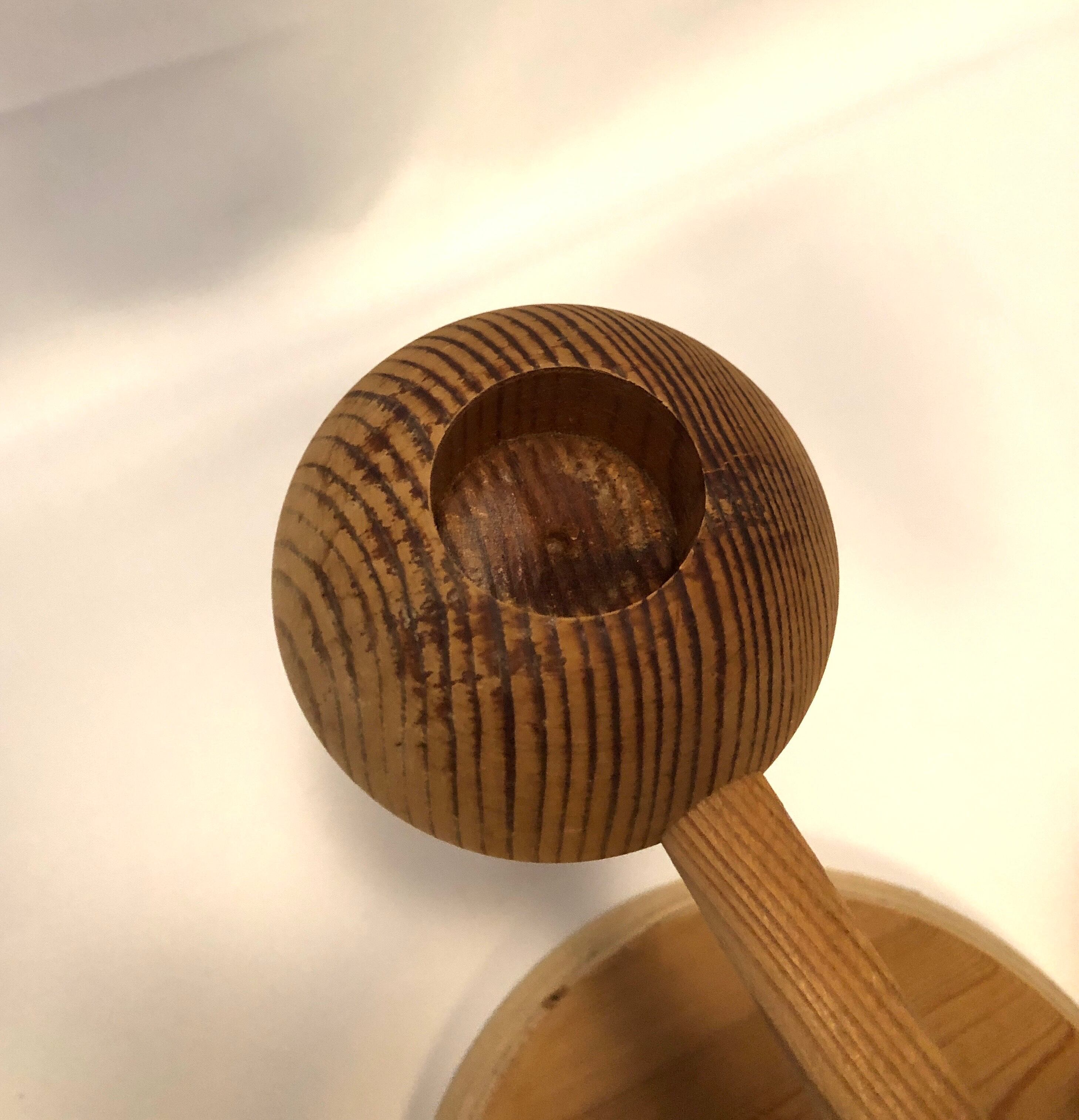 シールはがし跡など見られたりするものの、座を兼ねている割りに目立つ擦れ、キズ、汚れ、色褪せなど見当たらず概ね綺麗な状態と言えます。aarikka FINLAND ロゴが焼印風に記されています。※センター支柱を裏から留めるネジ(画像15)が見えていますが、きちんと中に入り混んでいるので、置く場所(面)にキズをつけたりすることも無く嬉しいポイントです。