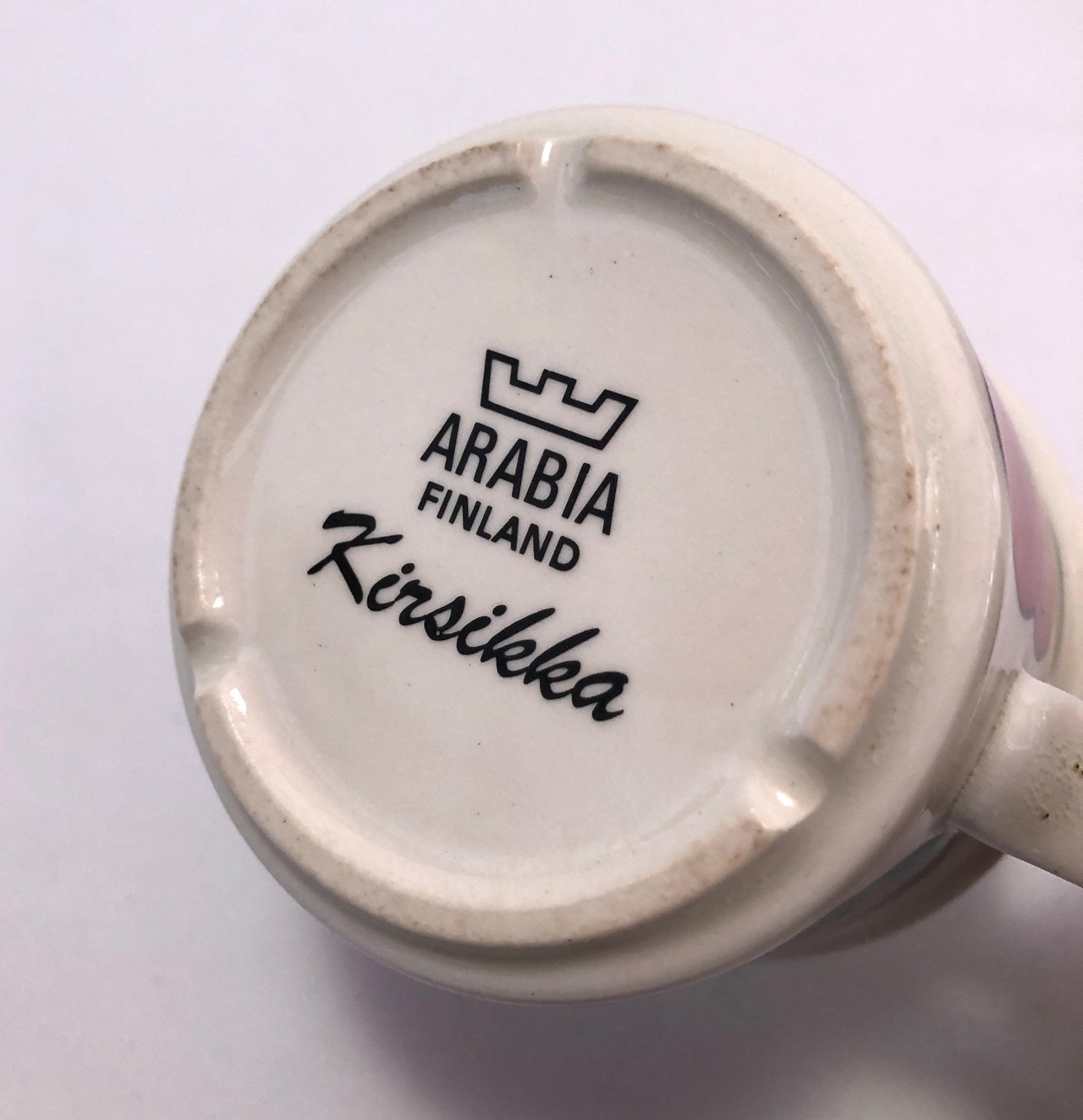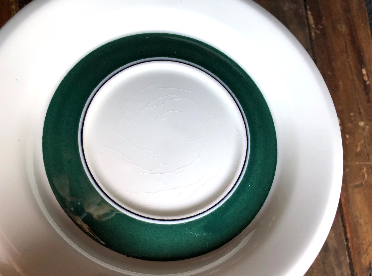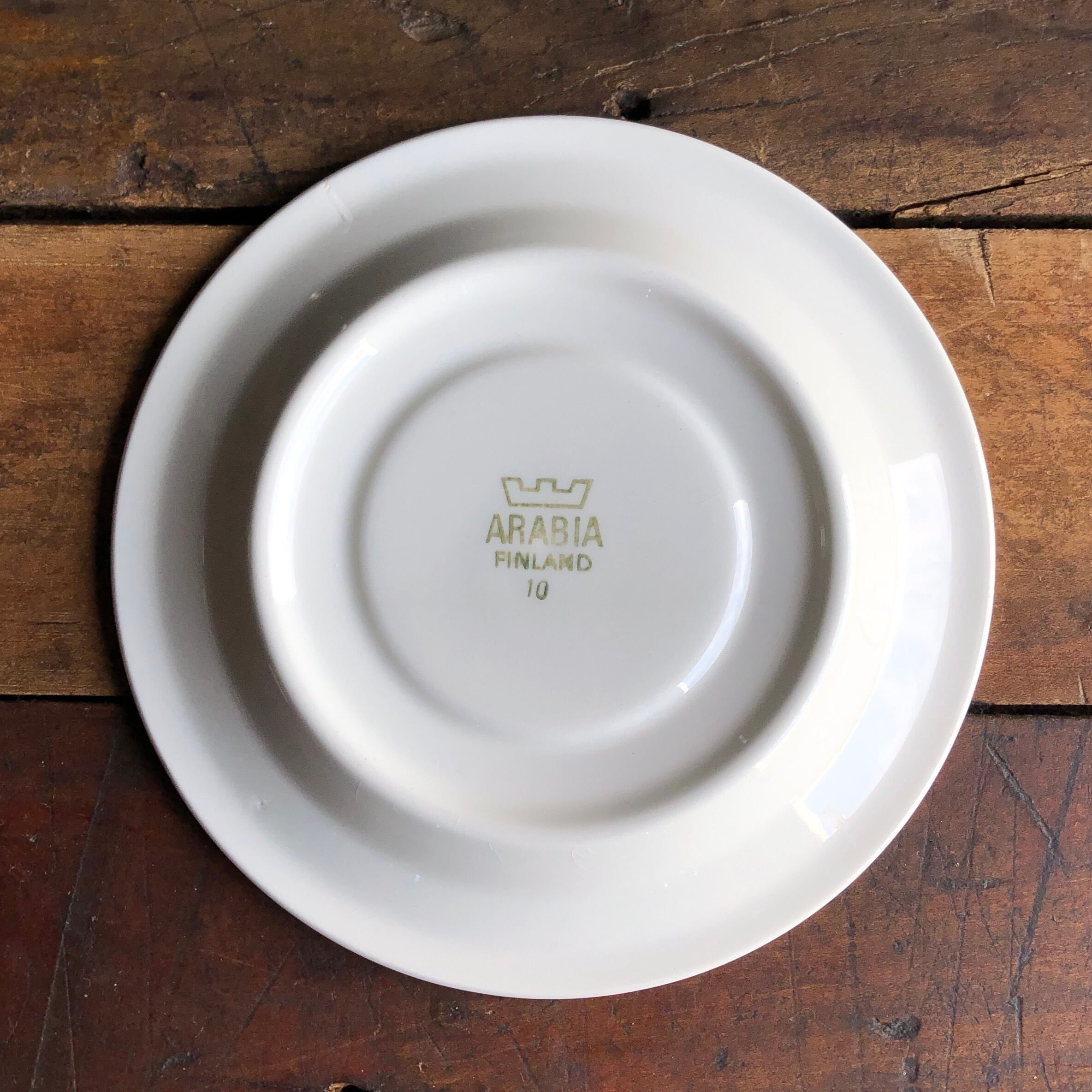 座の部分には擦れやくすみなど(画像8)見られるのですが、その他細かな擦れやこすれなど薄っすら少し感じる程度で比較的綺麗な状態と言えます。高台はスタッキングし易い構造であり、3分割されているのは水はけを高める工夫とされています。ARABIAなどの旧ロゴバックスタンプが見られます。