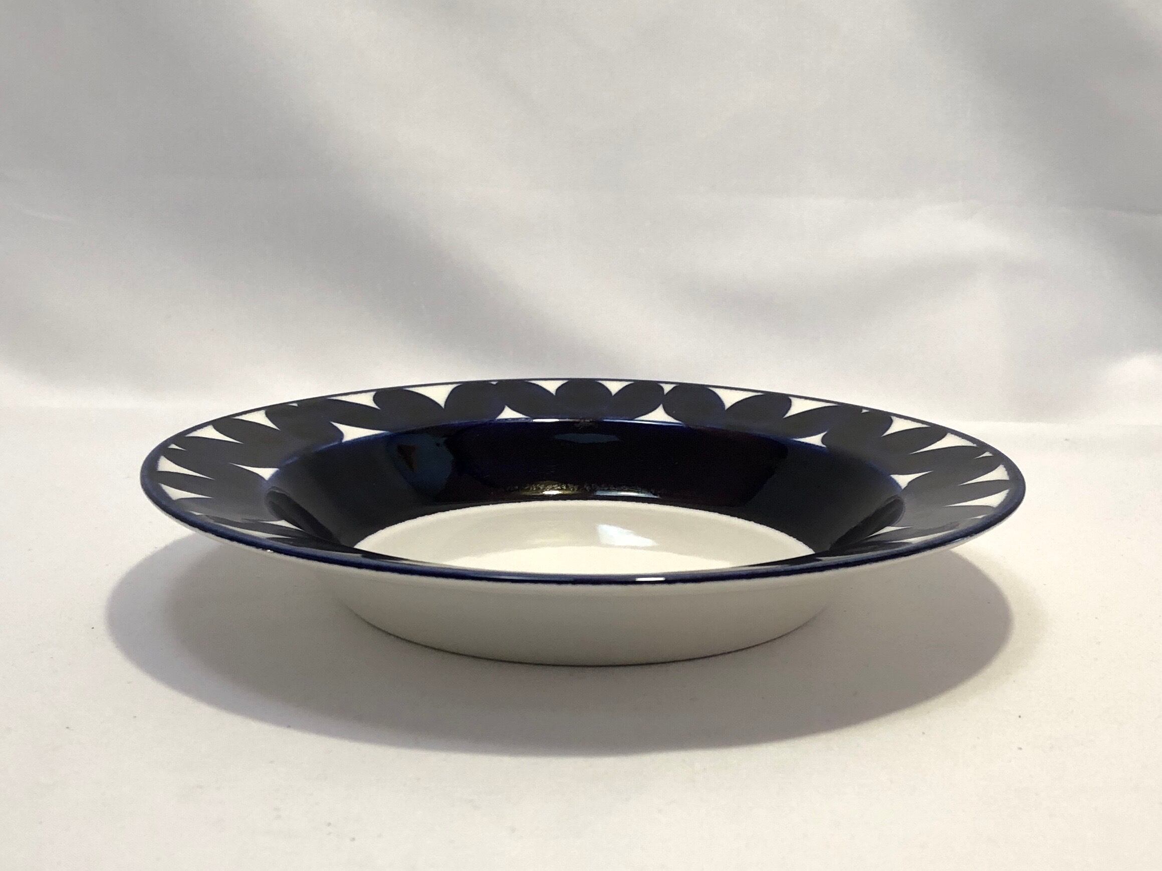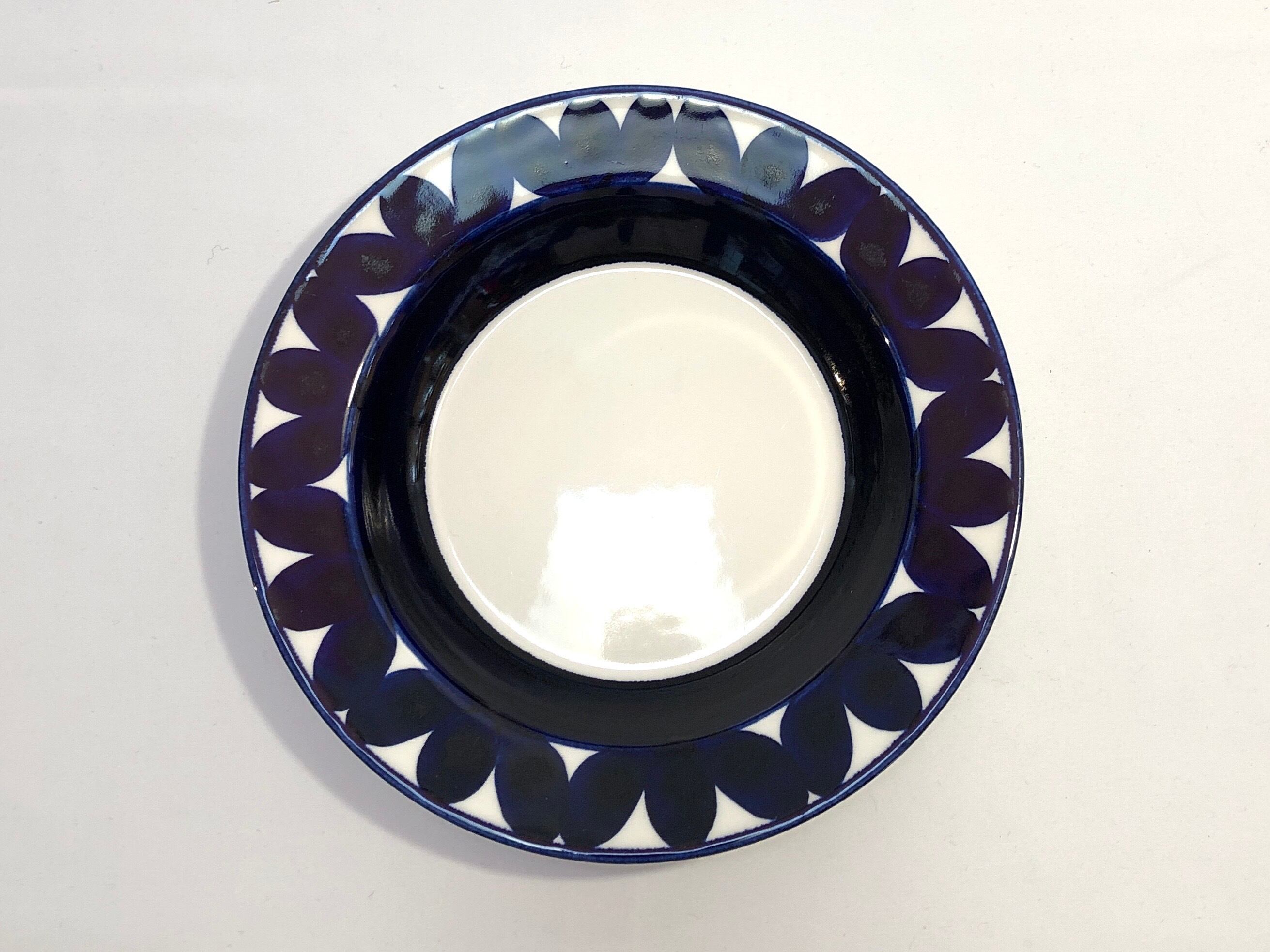 "Sotka" はフォルムデザイン Goran Back(ゴラン・バック)、デコレーションデザイン Raija Uosikkinen(ライヤ・ウオシッキネン)によって1960年代後半 - 70年代初頭頃に手掛けられたデザインで「アヒル」という様な意味を持ちます。そう言われて見れば、どことなくアヒルの尻尾の様な可愛らしさと美しさがあり、優しいタッチで手描きされたコバルトブルーの模様が表情の豊かさを楽しませてくれるシリーズです。