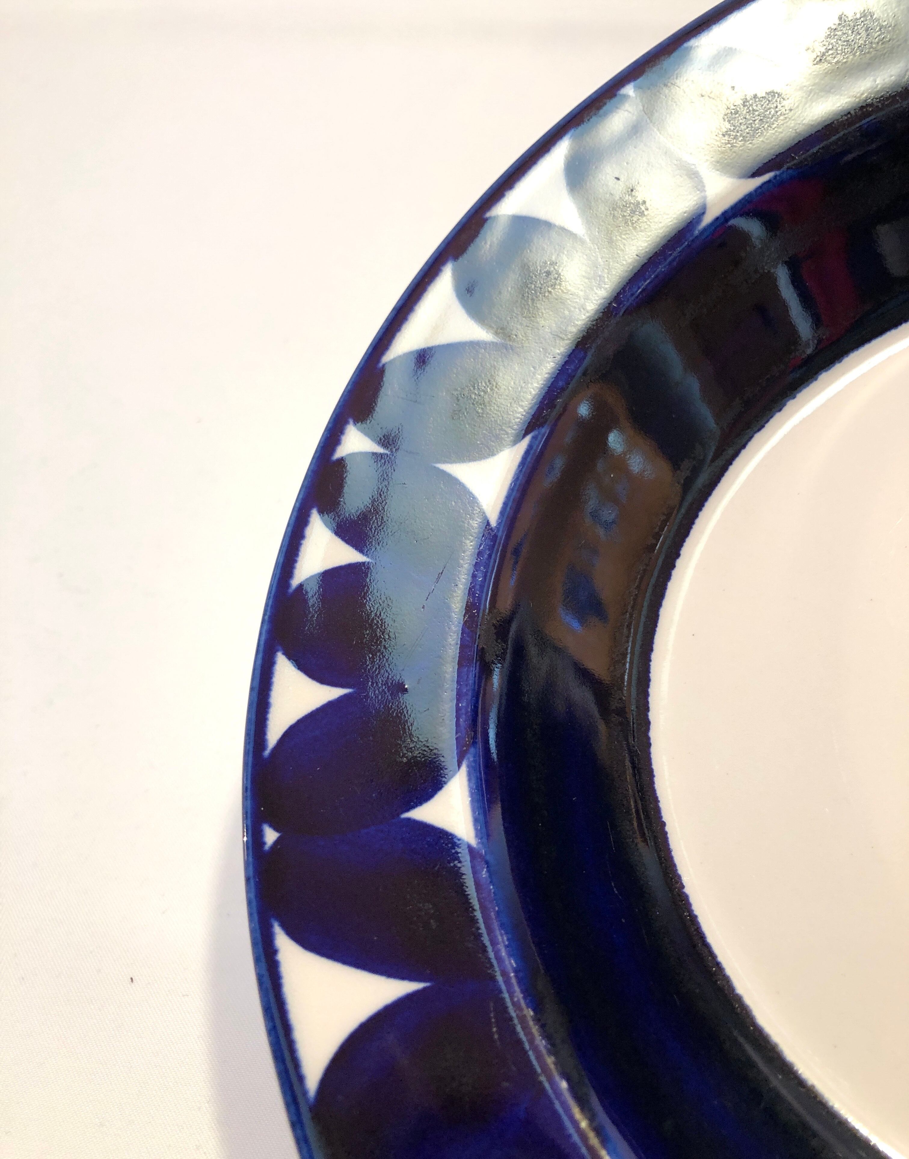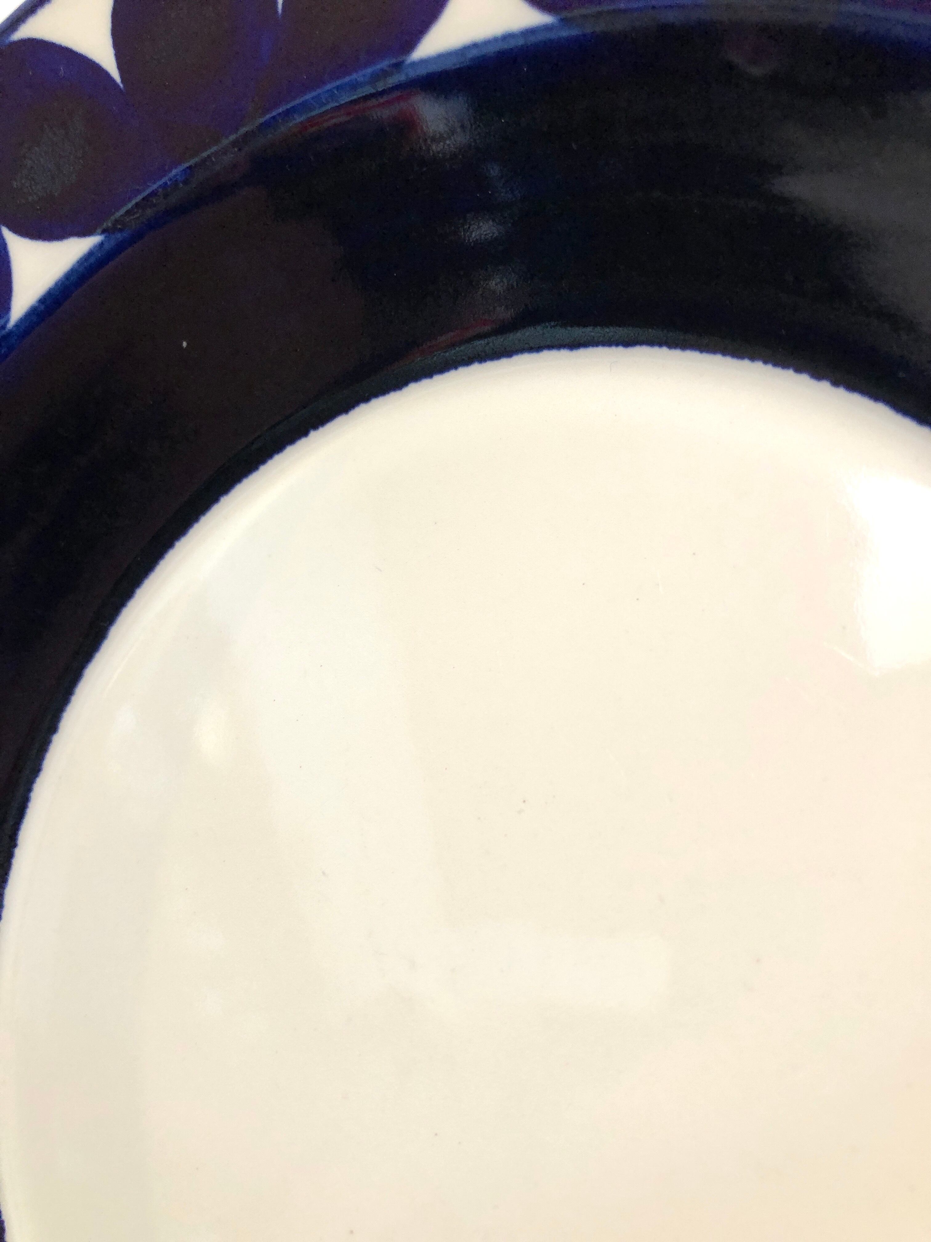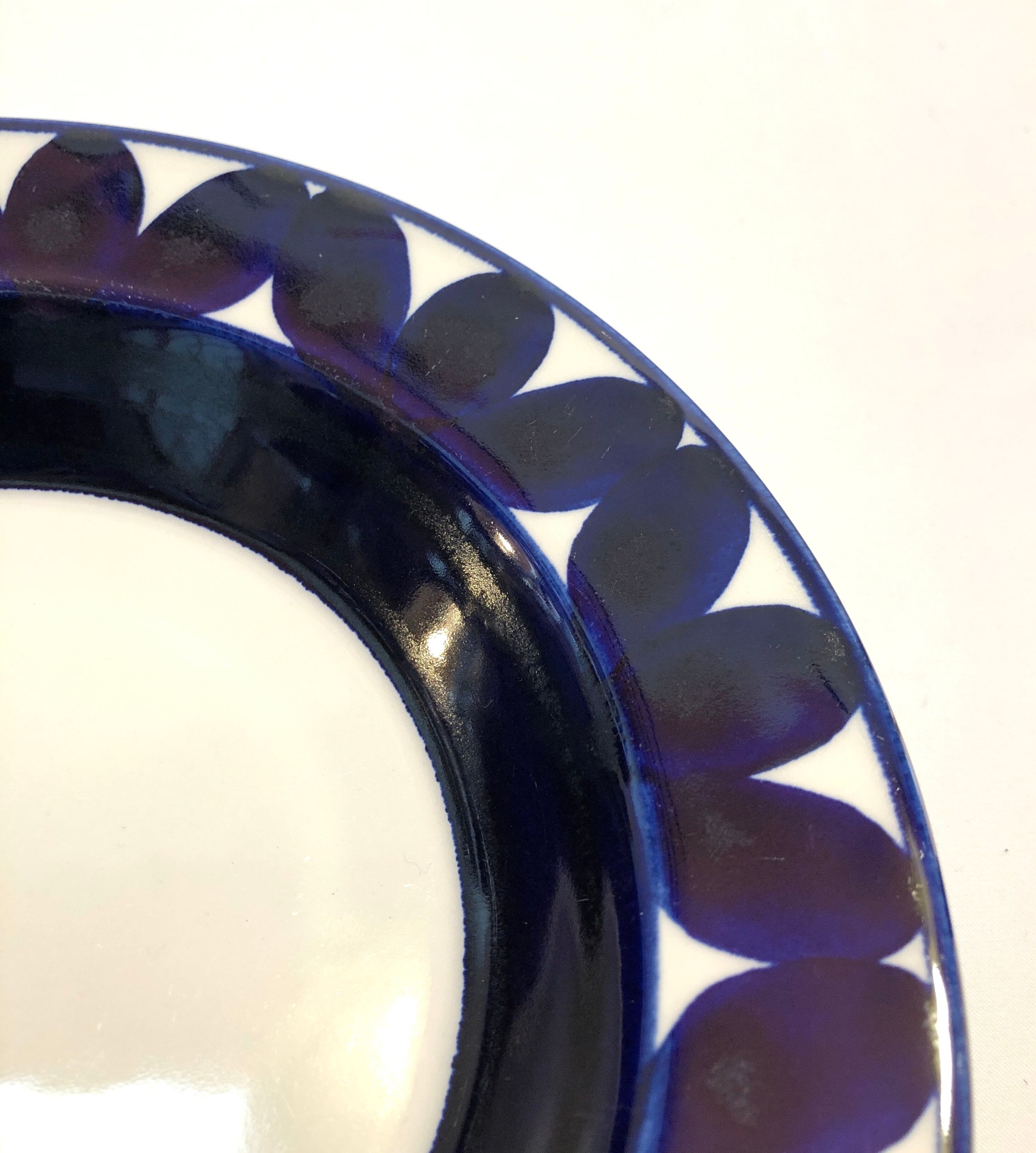図案とコバルトブルー色のグラデーションの可愛らしさと美しさを持ち合わせた表情の豊かさにご注目下さい。カトラリー跡と言える細かな擦れや微細なキズなど(画像4-6)の使用感は多少感じる箇所はあるものの、目立つ擦れ、キズ、汚れ、色褪せなど見当たらず比較的綺麗な状態と言えます。