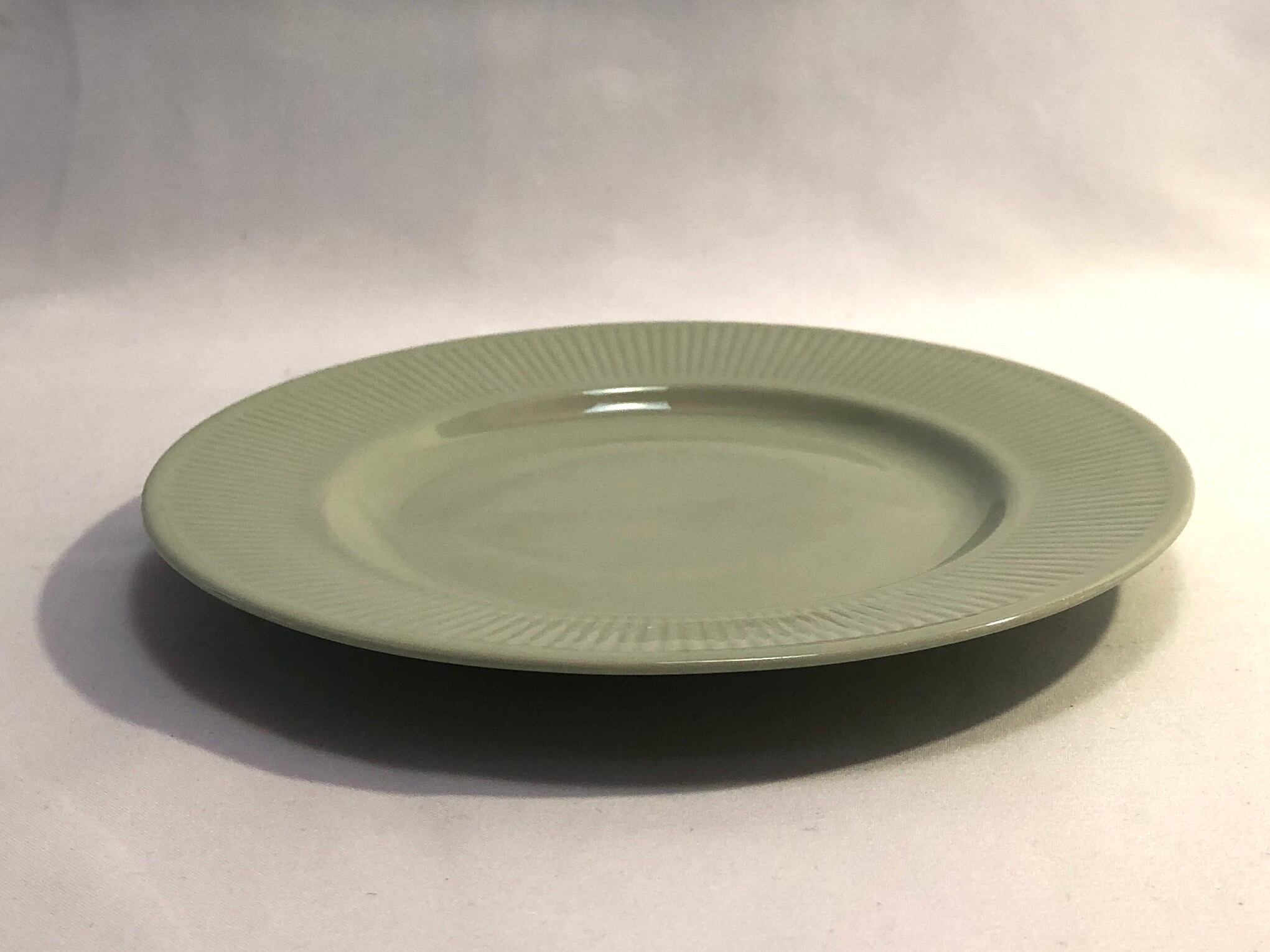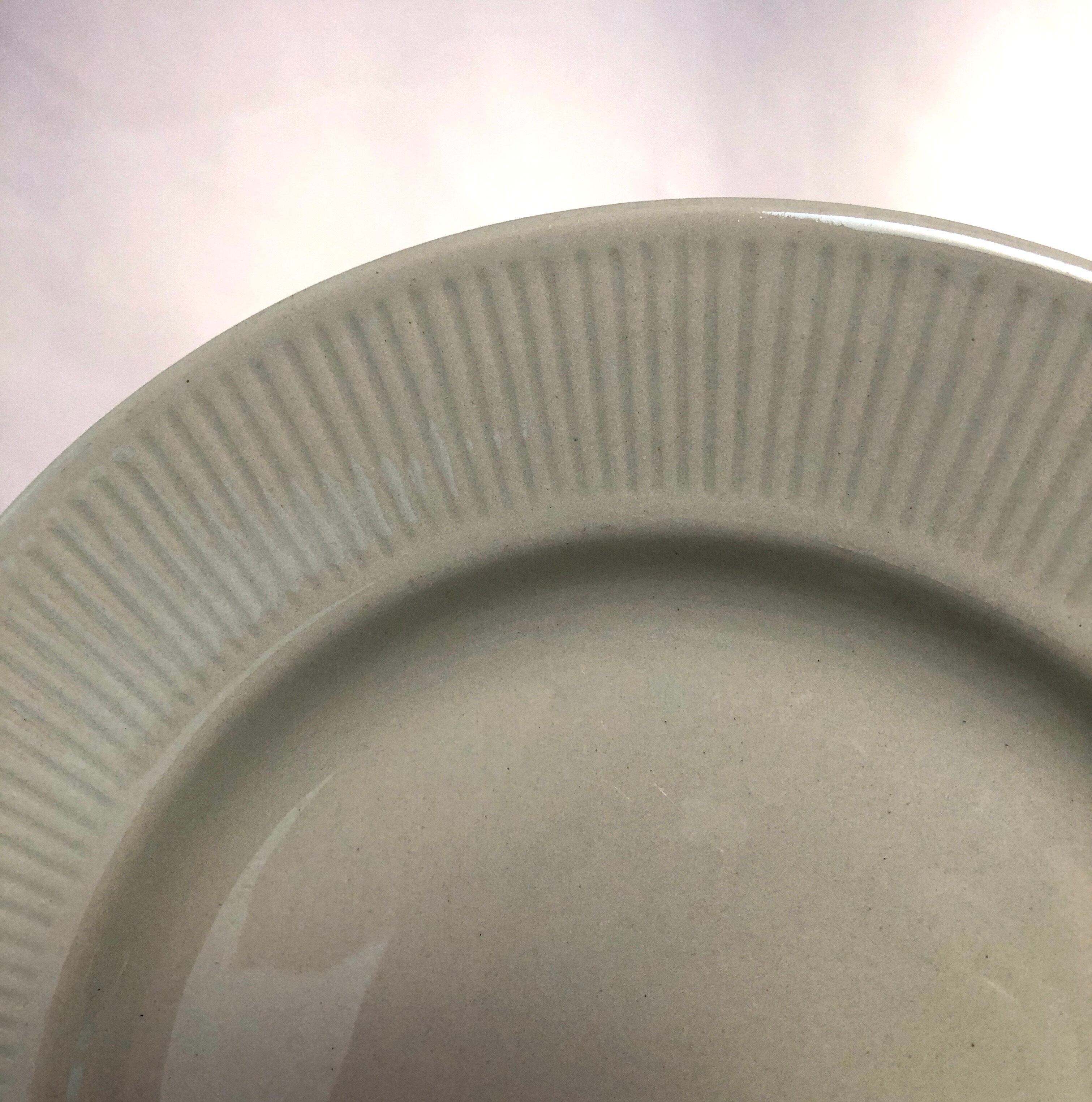 細かなスリット模様と優しげな淡いグリーンの色味にご注目下さい。細かな擦れや細キズなど(画像5 / 状態を見易く撮影しています。)カトラリー跡と言える使用感程度で、色褪せなど殆ど見当たらずナチュラルな風合いの変化で、目立つ擦れ、キズ、汚れなど見当たらず概ね綺麗な状態と言えます。※スリット模様は実際に凹凸を感じます。