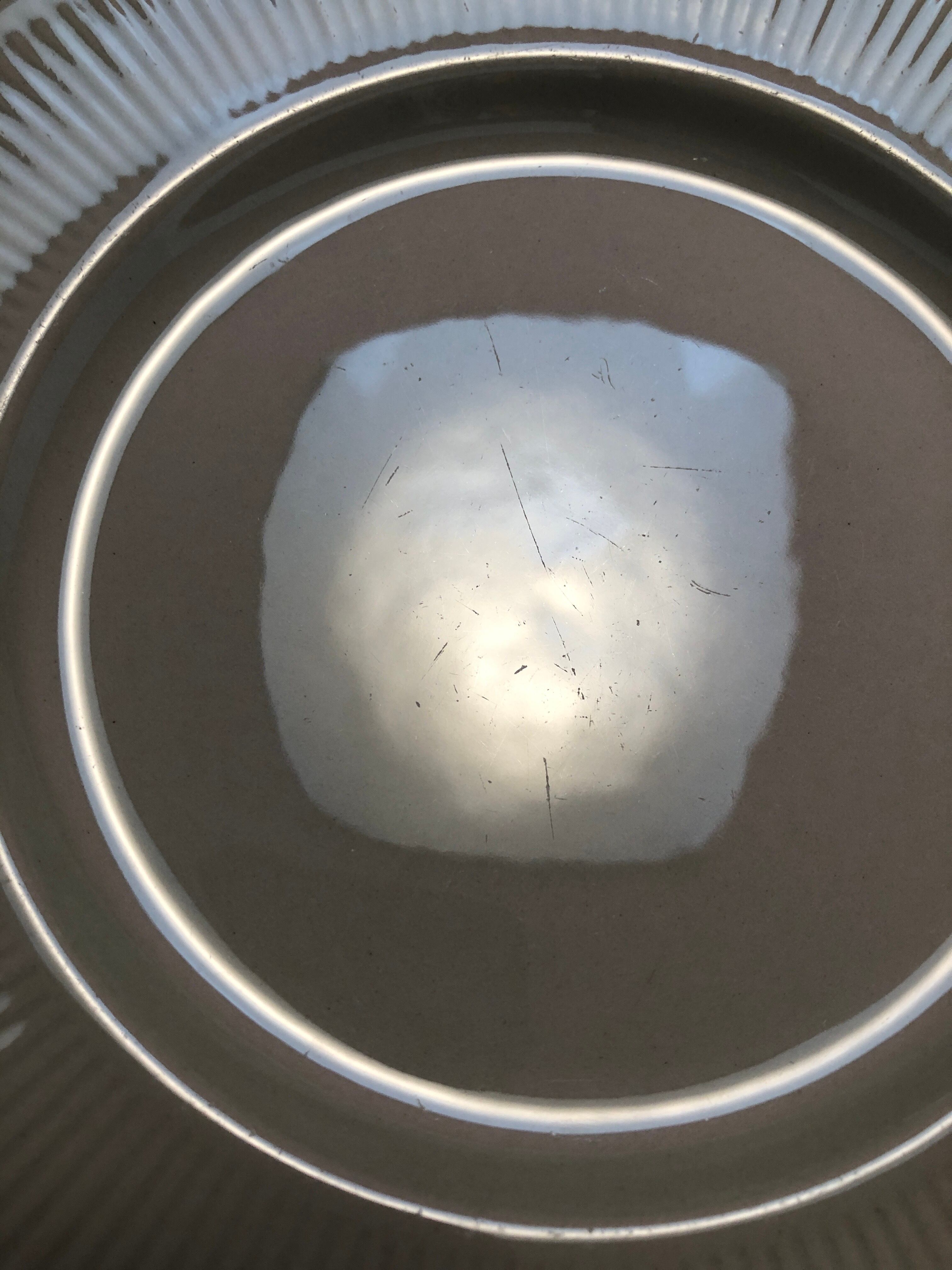 細かな擦れや細キズなどカトラリー跡と言える使用感程度で、色褪せなど殆ど見当たらずナチュラルな風合いの変化で、目立つ擦れ、キズ、汚れなど見当たらず、欠けや割れなど見られないことから、時を刻んで来た器として概ね綺麗な状態と言えます。※ゆらぎ、釉薬ムラ、スリット模様、焼成時の跡など個体差は出ている可能性はございます。