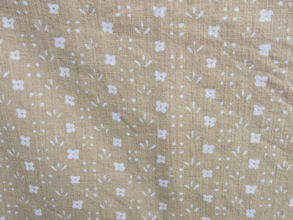 色の構成はヴィンテージベージュ(砂色)をベースに "お花畑" 模様は白色で描かれています。