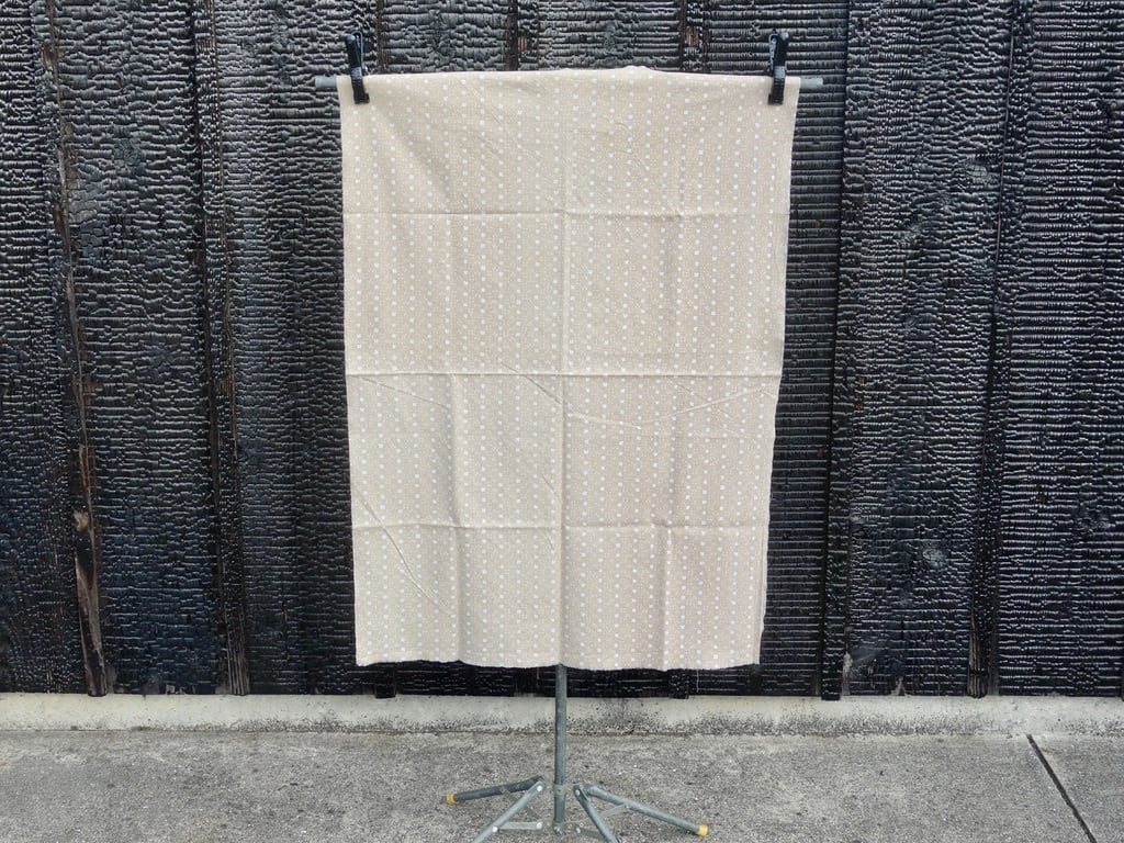 長年の経過による色褪せや風合いの変化は出ている可能性はございますが、目立つ汚れや色褪せなど見当たらず、生地に裂けや穴など見られないことから概ね良好な状態と言えます。※プリントムラやロス、輸送保管時の折り跡や折りシワ、織り跡やネップ、小さな色飛びなど出ている可能性はございます。