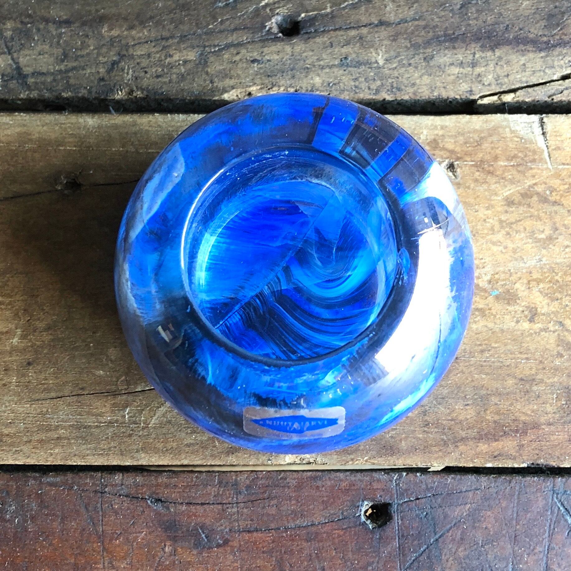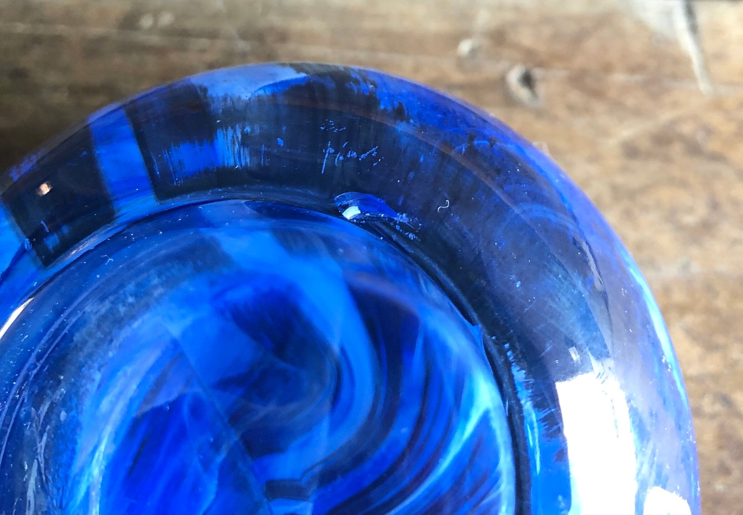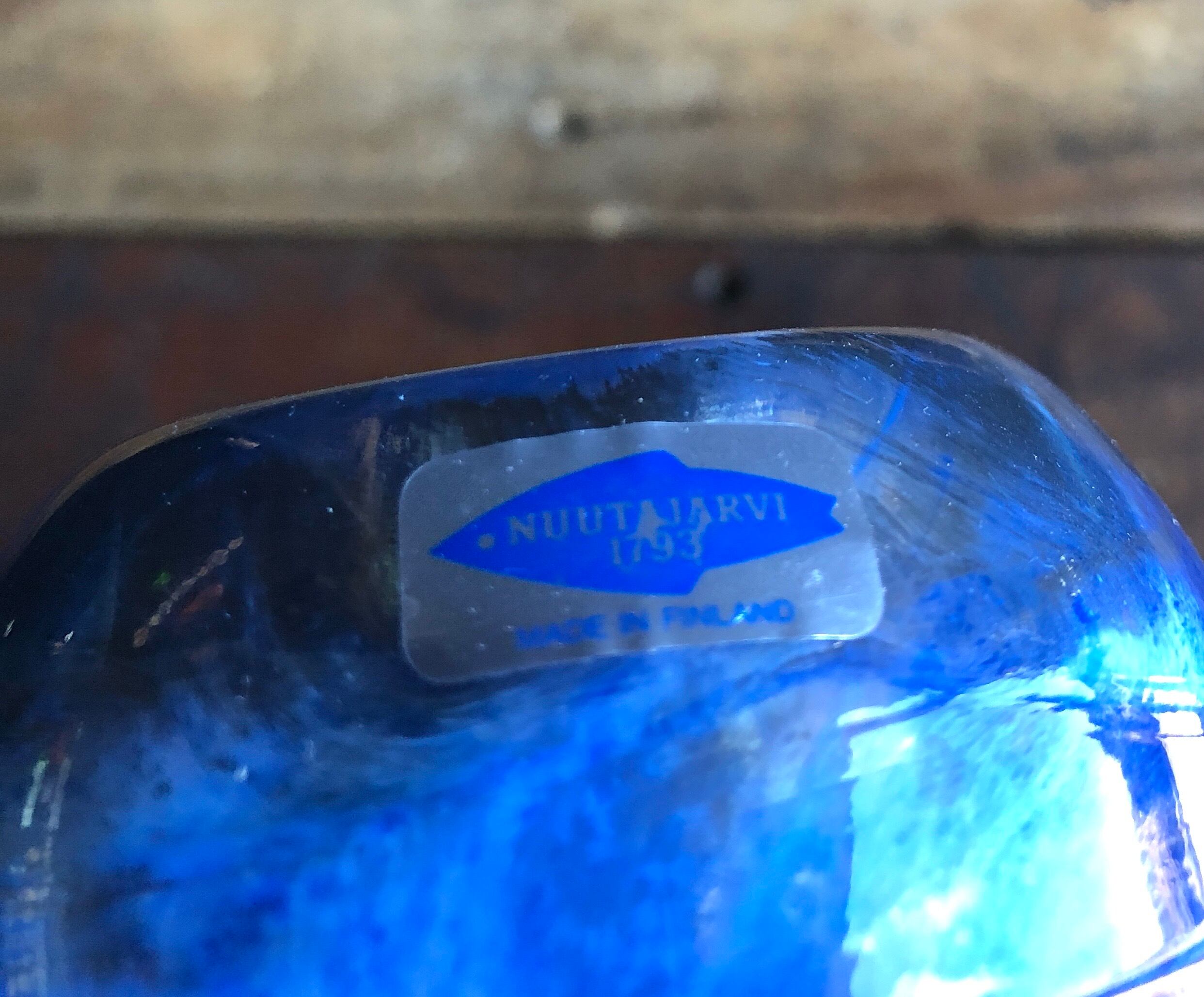 絵の具を解いた時に目にする様な表情がなんとも言えない個性的な表情をお楽しみ頂けます。多少グレーがかった部分があり、雲行きが怪しい感じの表情をしています。目立つ擦れ、キズ、汚れなど見当たらず概ね良好な状態と言えます。側面上部に Nuutajarvi ロゴシールが残っています。