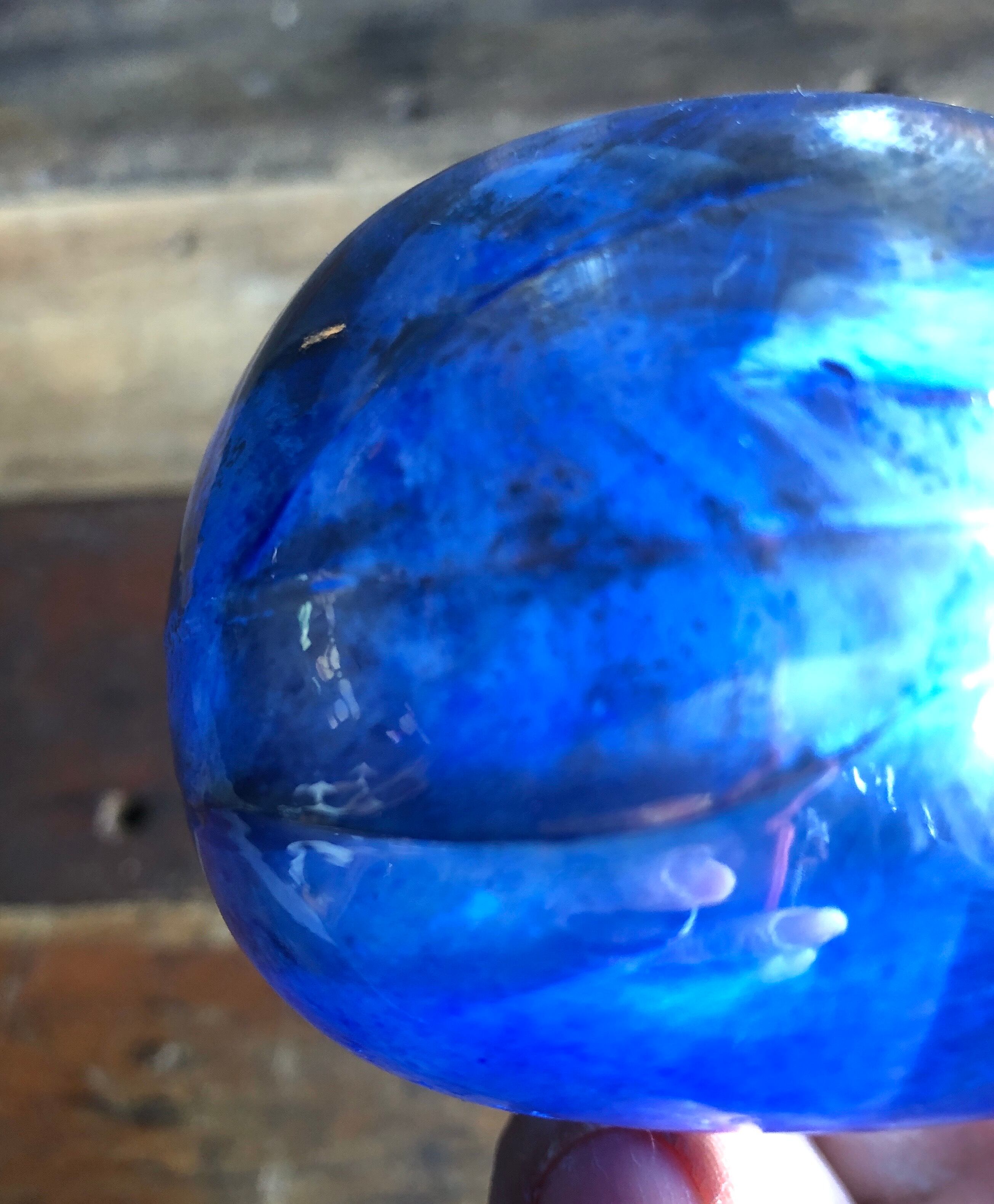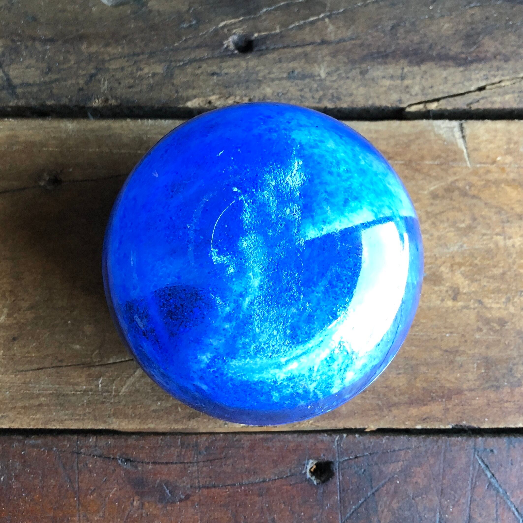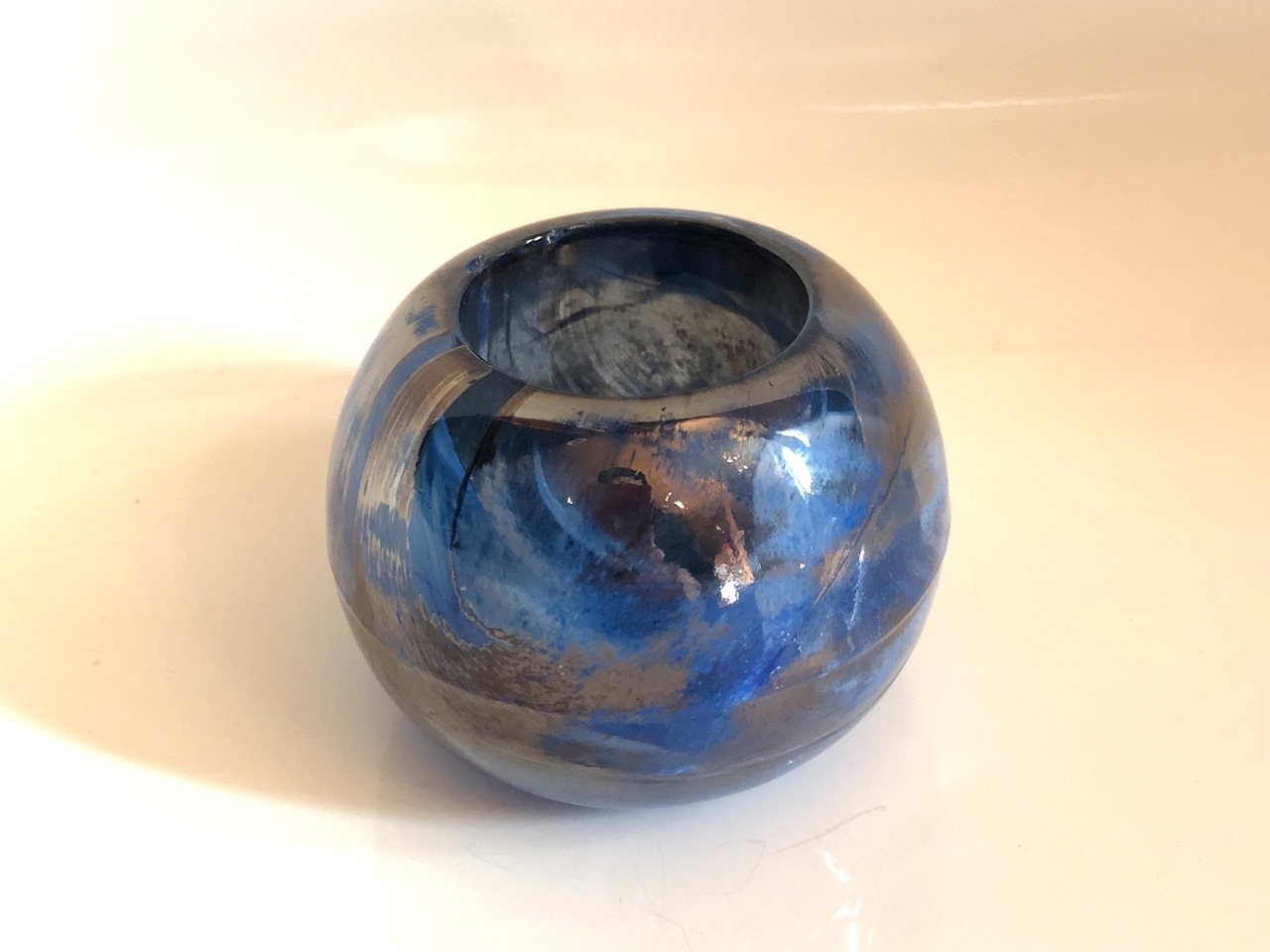 絵の具を解いた時に目にする様な表情がなんとも言えない個性的な表情をお楽しみ頂けます。多少グレーがかった部分があり、雲行きが怪しい感じの表情をしています。目立つ擦れ、キズ、汚れなど見当たらず概ね良好な状態と言えます。側面上部に Nuutajarvi ロゴシールが残っています。