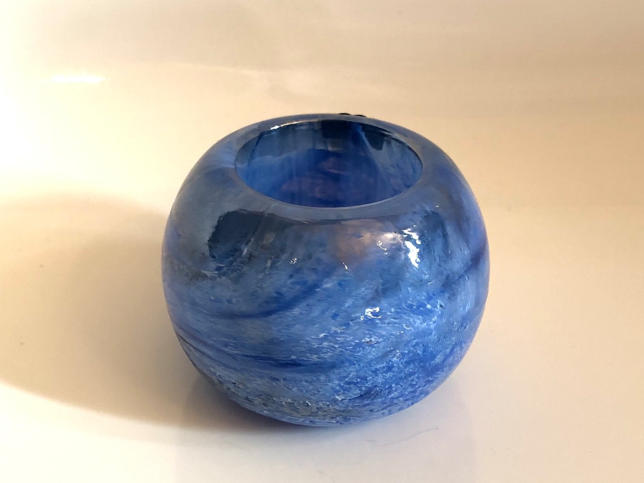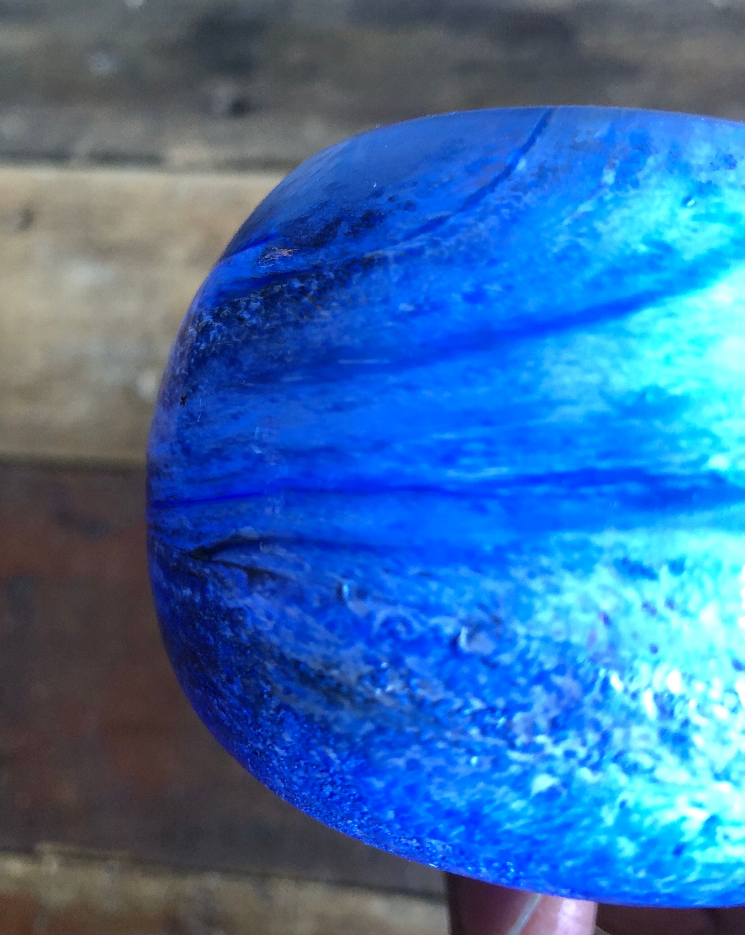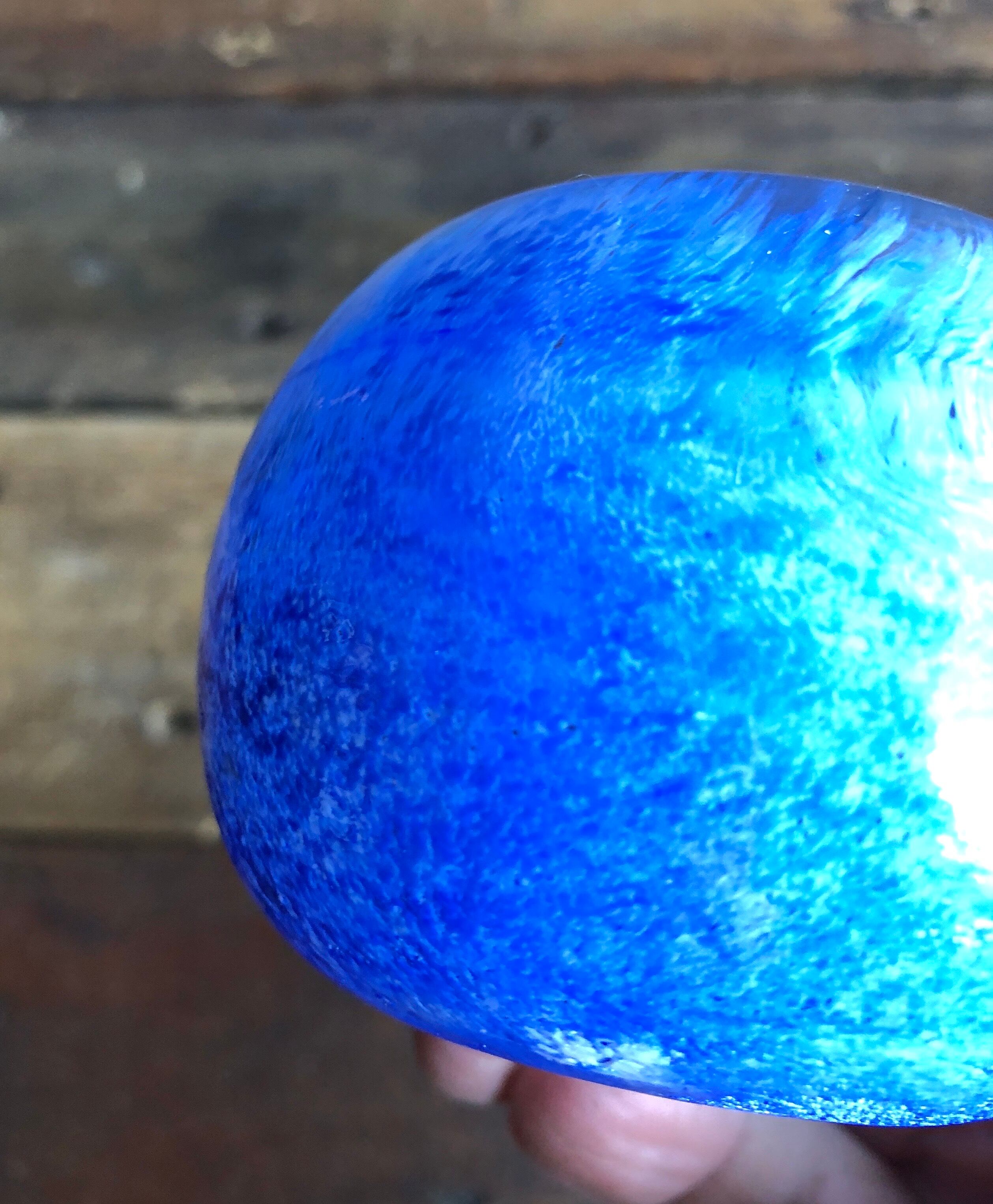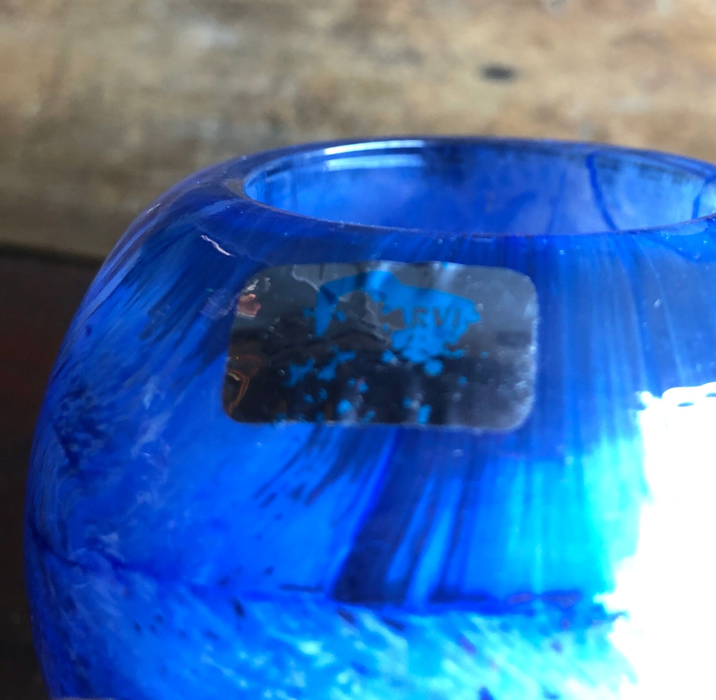 絵の具を解いた時に目にする様な表情がなんとも言えない個性的な表情をお楽しみ頂けます。ほんのりグレーがかった部分があり、雲行きが怪しい感じの表情をしています。目立つ擦れ、キズ、汚れなど見当たらず概ね良好な状態と言えます。側面上部に Nuutajarvi ロゴシールが残っています。