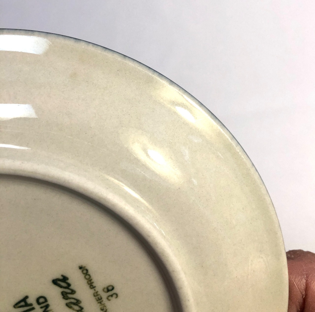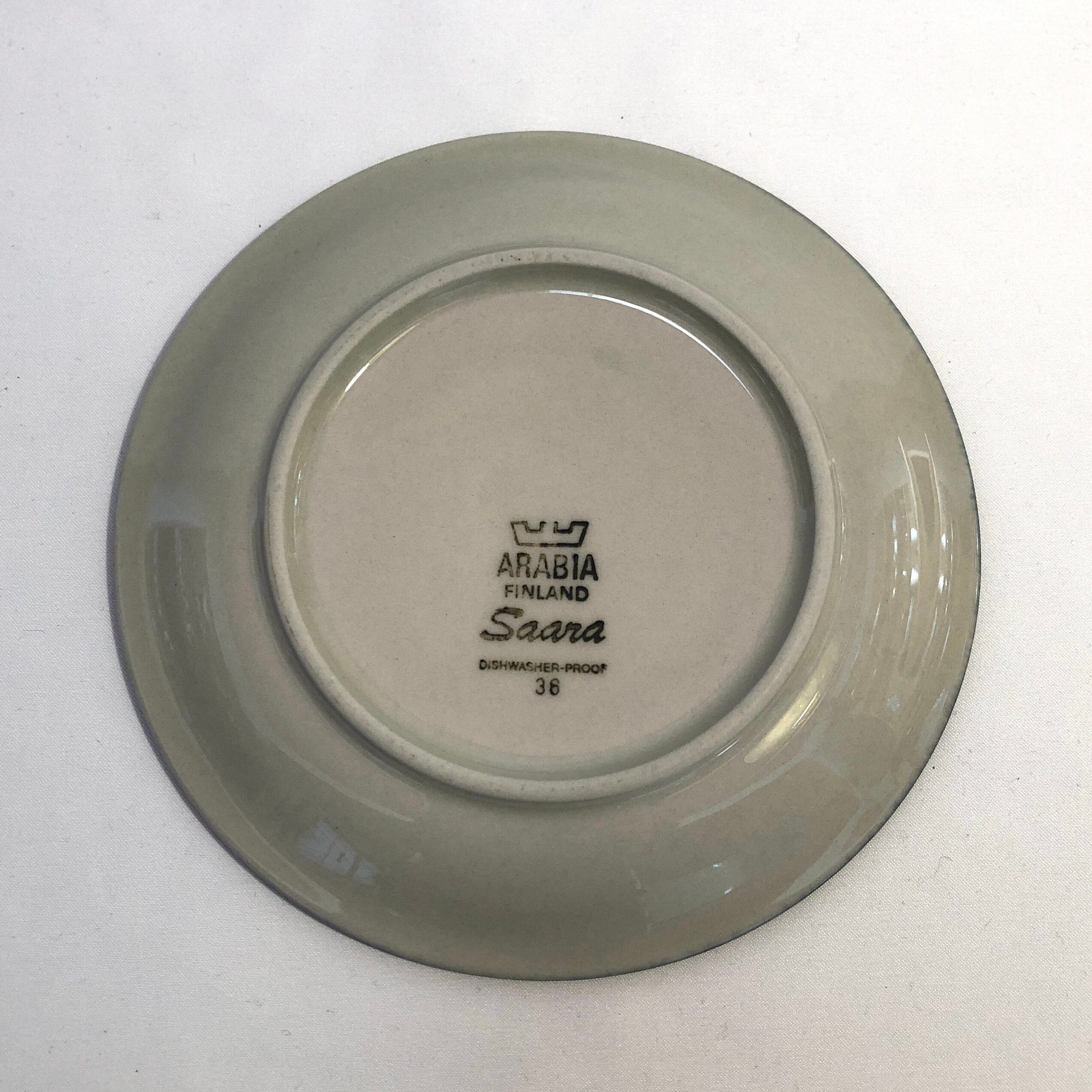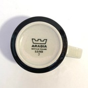 細かな擦れ、微細キズ、座上の擦れやくすみなど(画像14)多少見られはするものの比較的綺麗な状態と言えます。ARABIA 旧ロゴなどのバックスタンプが残されており、食洗機可とされています。※高台のちょっと外側に長めの弧を描いたスジの様な跡(画像15)が見られますが、おそらく製作跡ではないかと思われます。