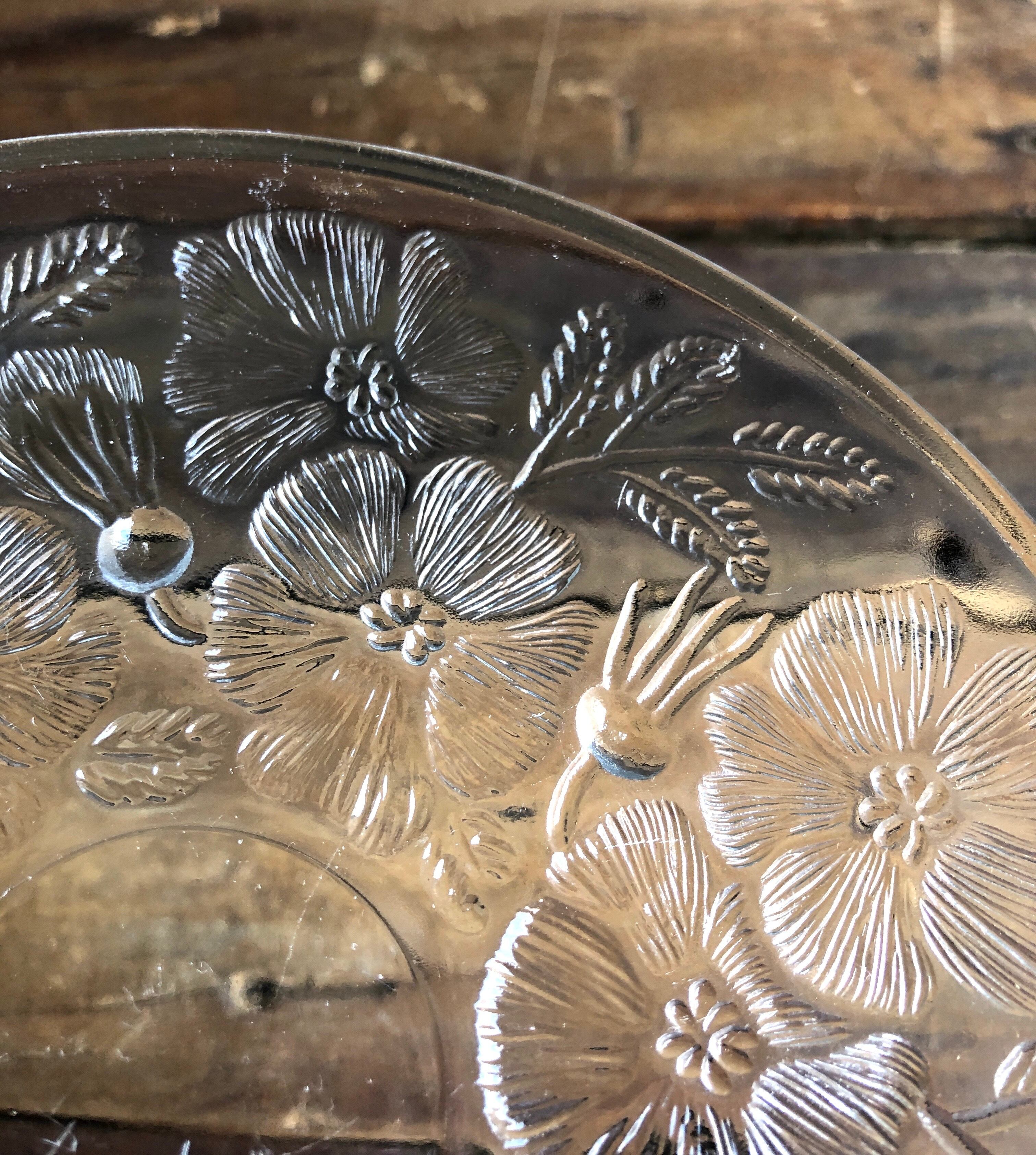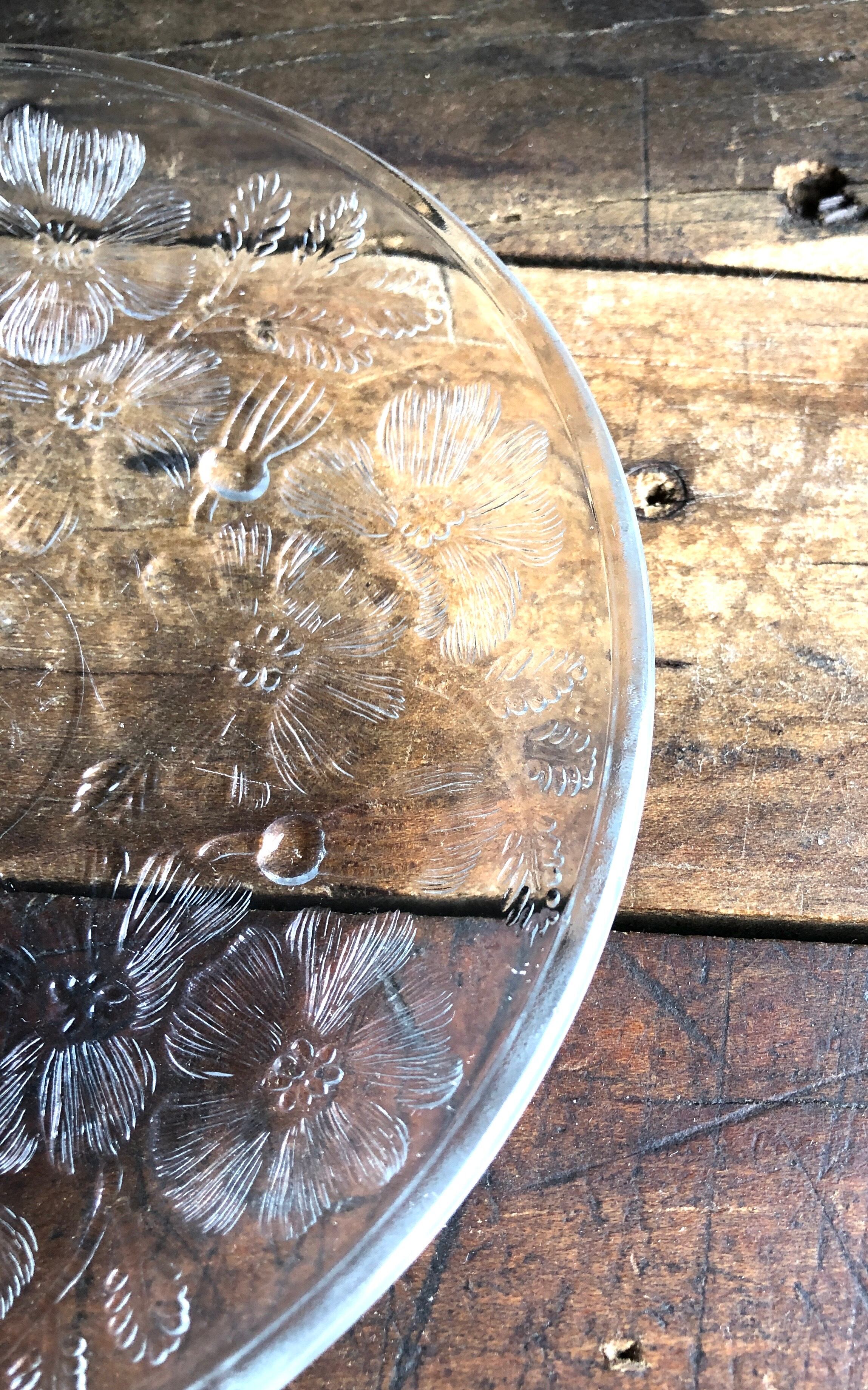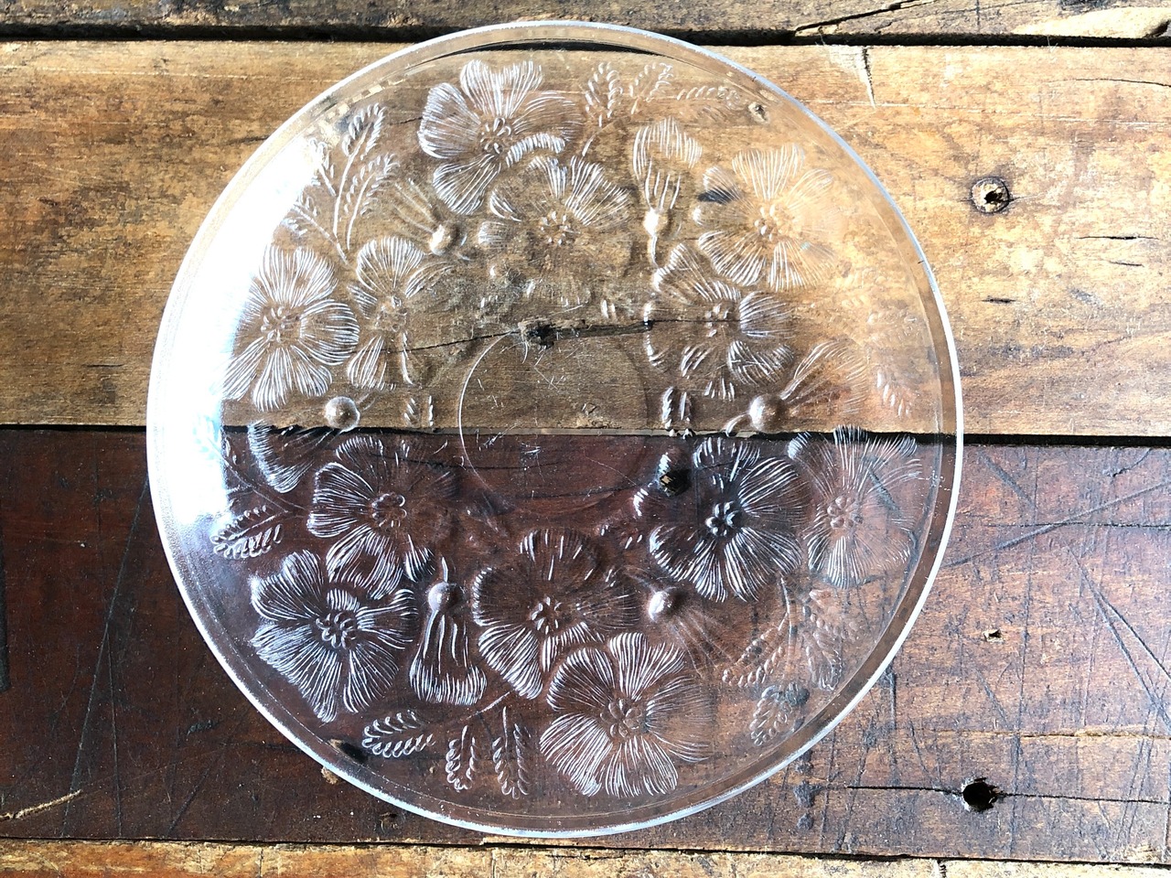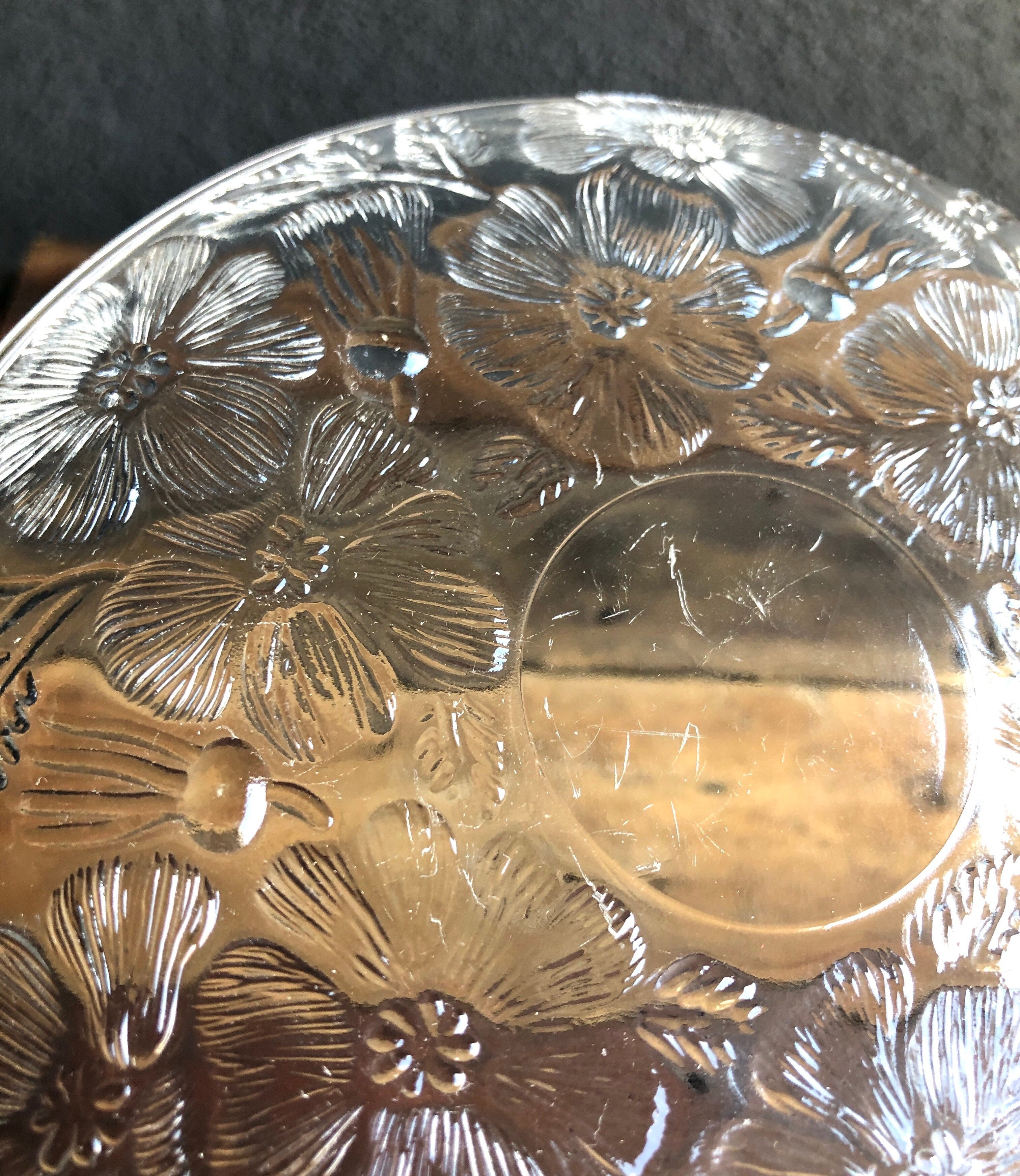 経年による風合いの変化、カトラリー跡と言える細かな擦れや細キズなど多少見られる箇所はありますが、目立つ擦れ、キズ、汚れなど見当たらず、欠けや割れなど見られないことから、時を刻んで来たガラスの器として比較的綺麗な状態と言えます。※ガラス製品特有のゆらぎ、シワやスジ、加工時の小さな気泡やキズ、模様の個体差など出ている可能性はございます。
