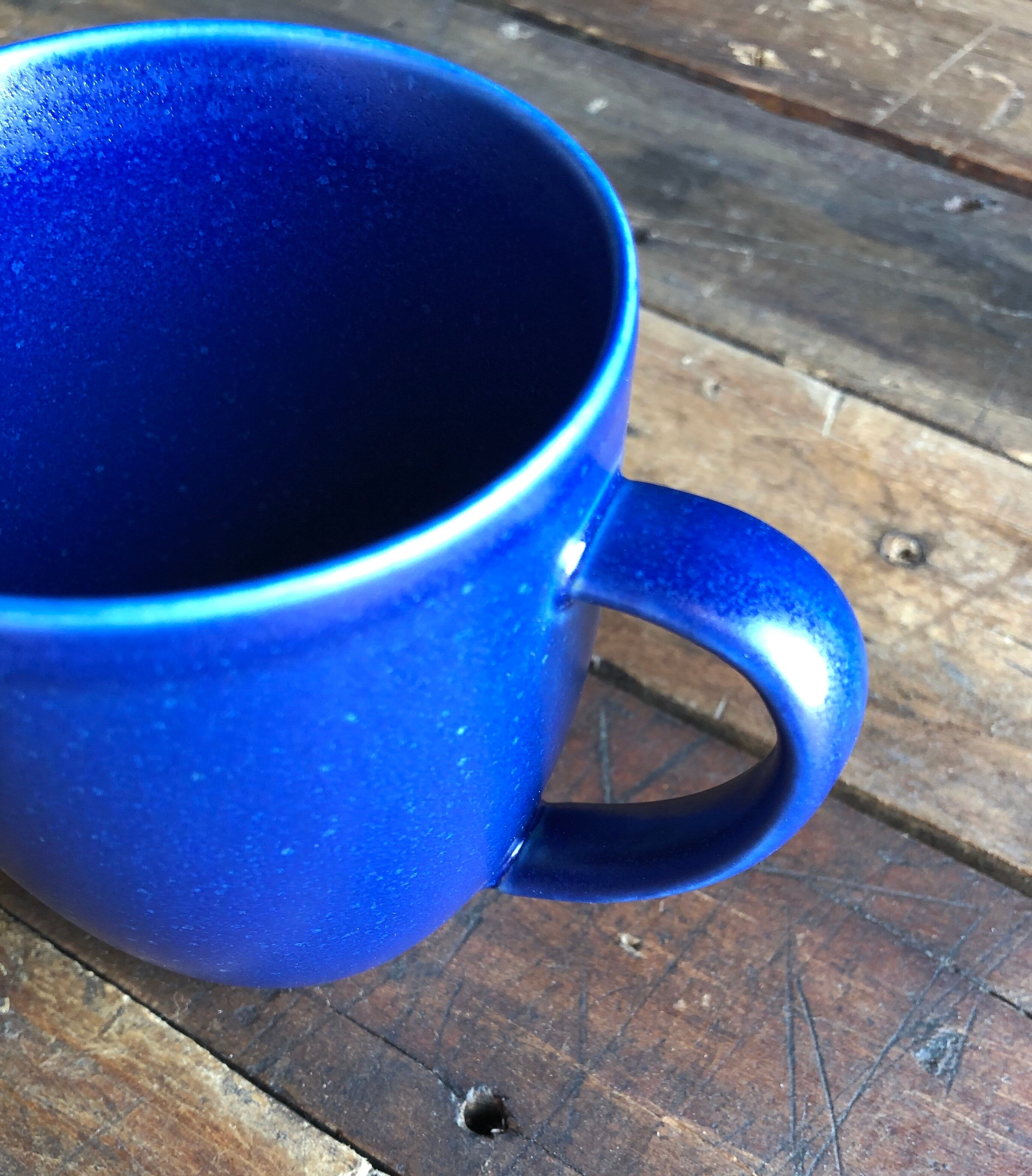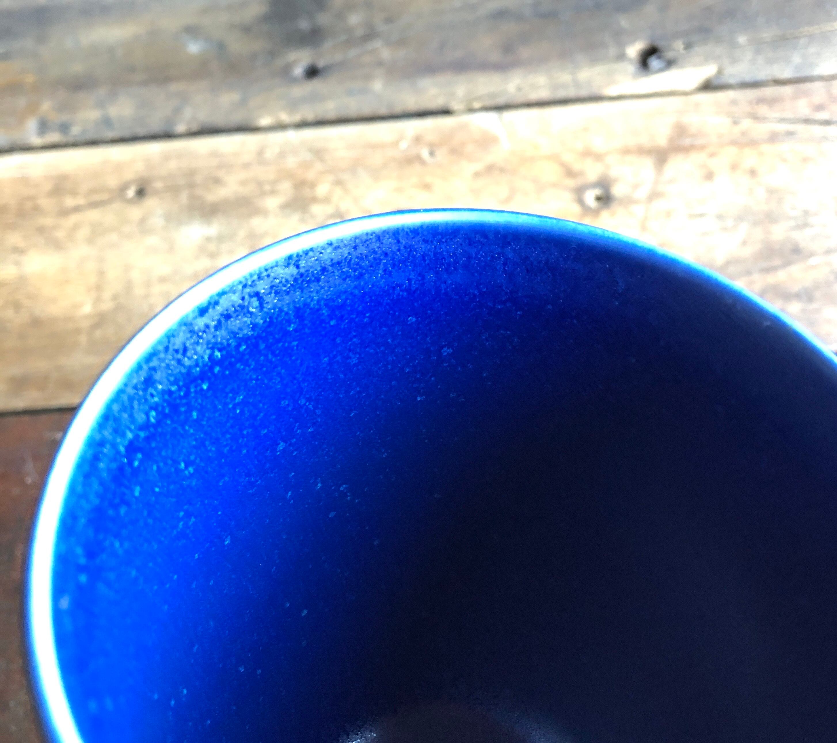 24h(紺)らしい釉薬ムラの様な独特の雰囲気と内面底部に表情に紛れたようなカトラリー跡と言える細擦れなどの使用感は感じる箇所はありますが、目立つ擦れ、キズ、汚れ、色褪せなど見当たらず、欠けや割れなど見られないことから、時を刻んで来た器として比較的綺麗な状態と言えます。※縁まわりに焼成時の色の濃淡が現れている状態となりますが、これらも24hの独特の魅力の一つになります。