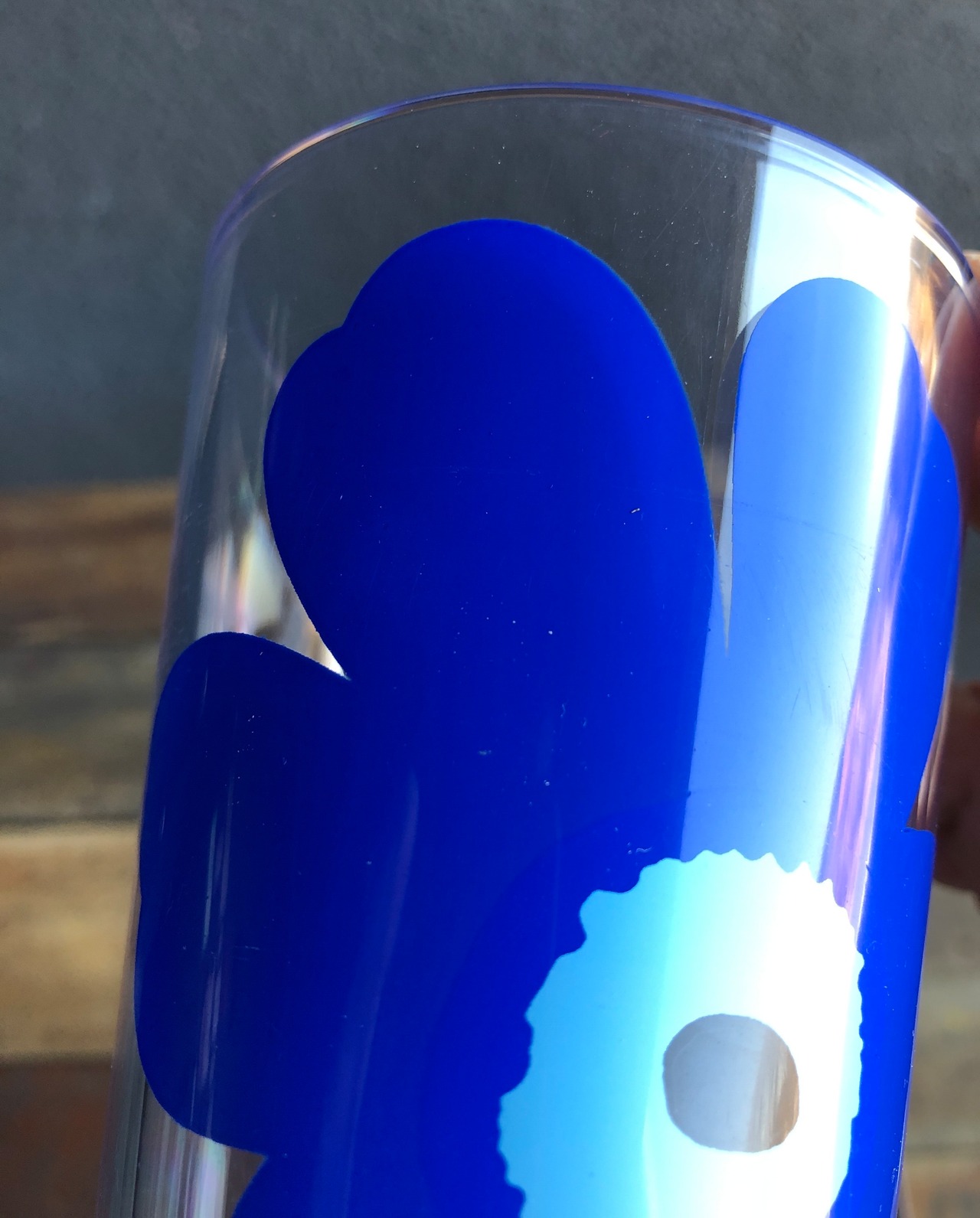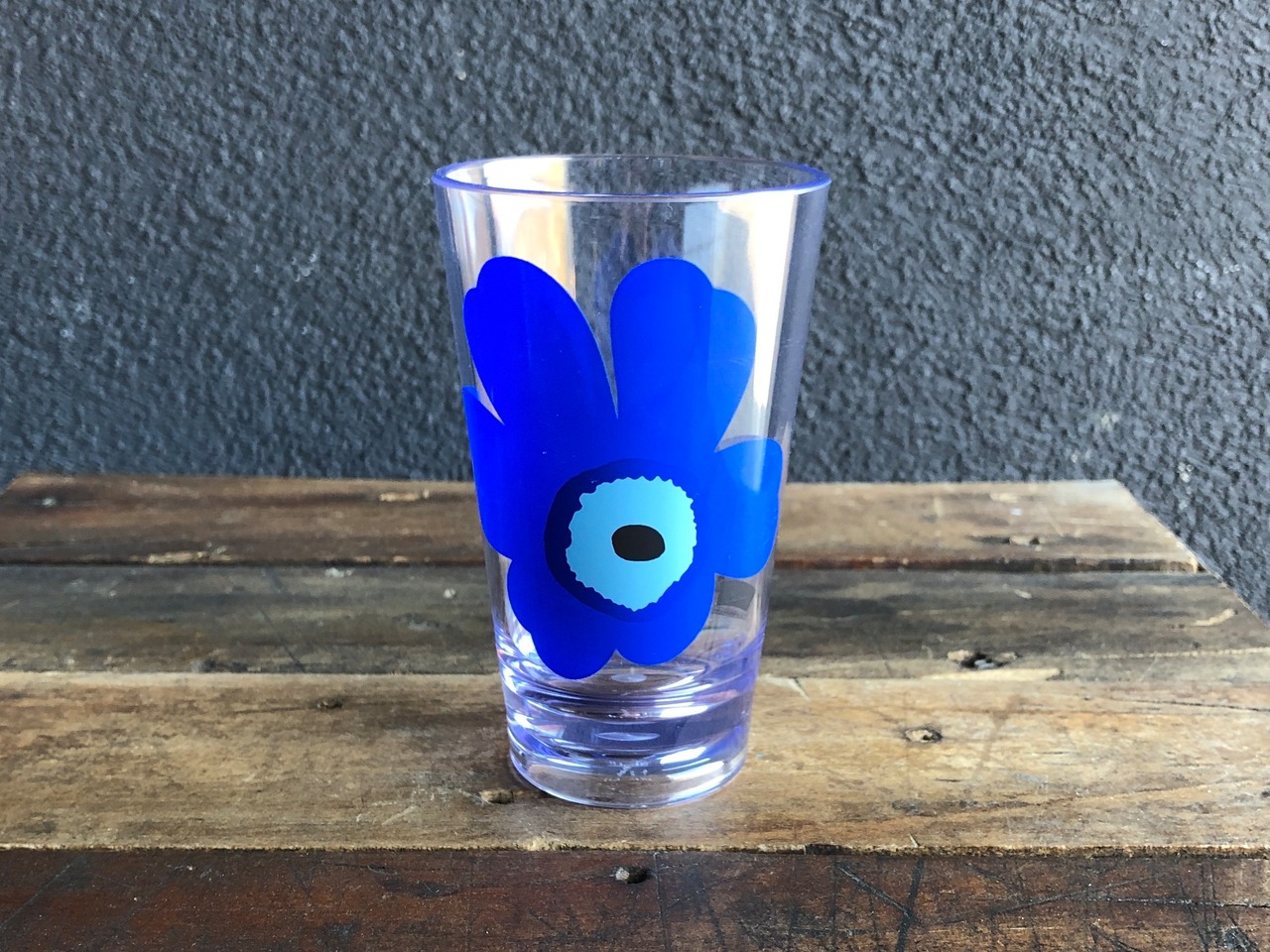 marimekko と ZAK designs(アメリカの食器ブランド)とのコラボレーション、"UNIKKO"(青)パターンのアクリル素材のタンブラー。惜しくも廃番となってしまい、めっきり見かけなくなってしまった懐かしい感じのするアイテムと言えます。