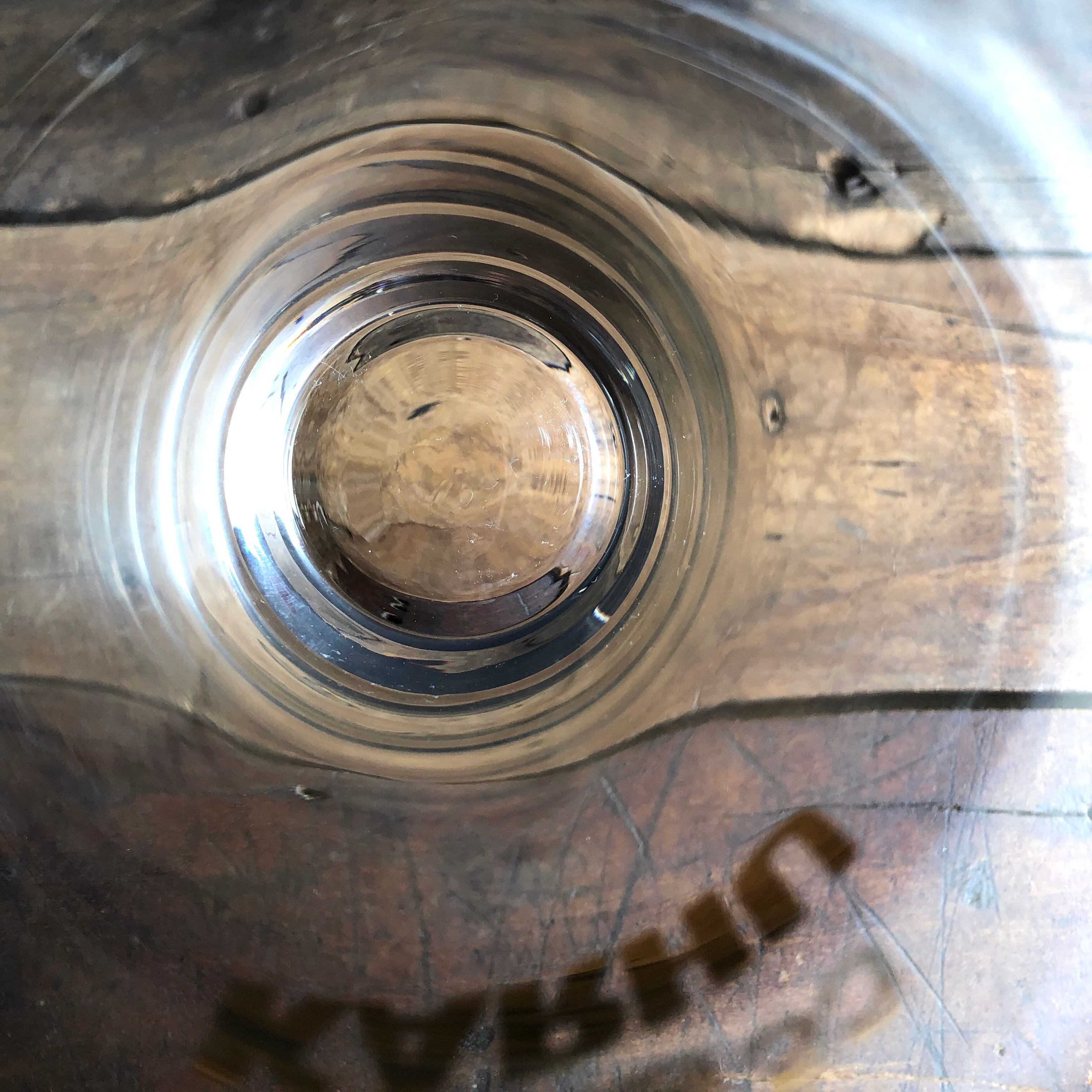 経年による風合いの変化は多少感じるものの、細かな擦れなどの使用感は少し感じる箇所がある程度で、目立つ擦れ、キズ、汚れなど見当たらず、欠けや割れなど見られないことから、時を刻んで来たガラスの器として概ね良好な状態と言えます。※ガラス製品特有のゆらぎ、シワやスジ、絵面などの個体差、加工時の小さな気泡や微キズなど出ている可能性はございます。